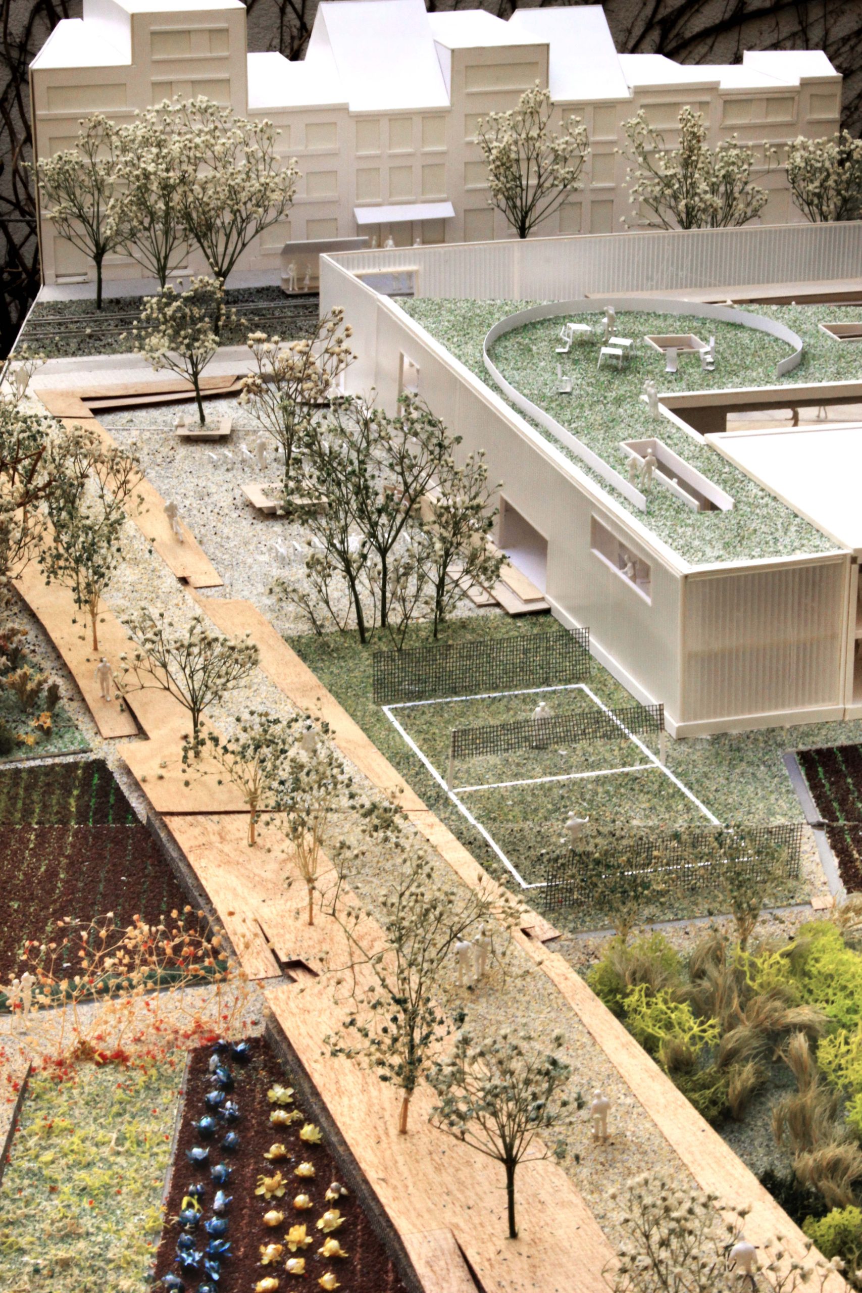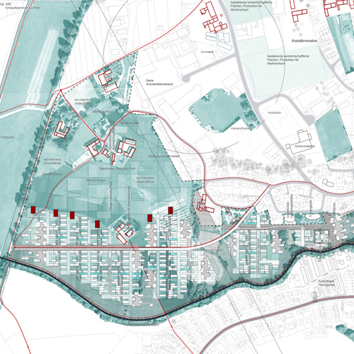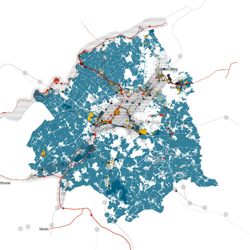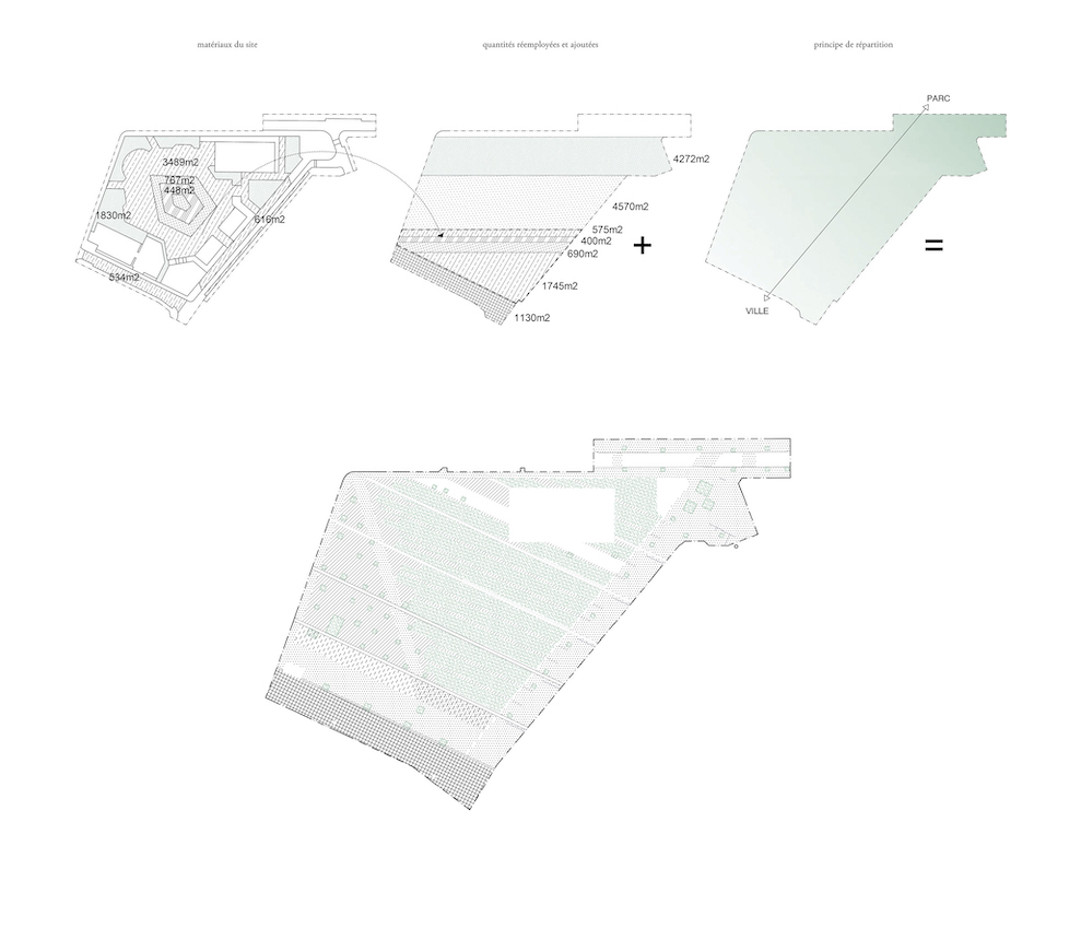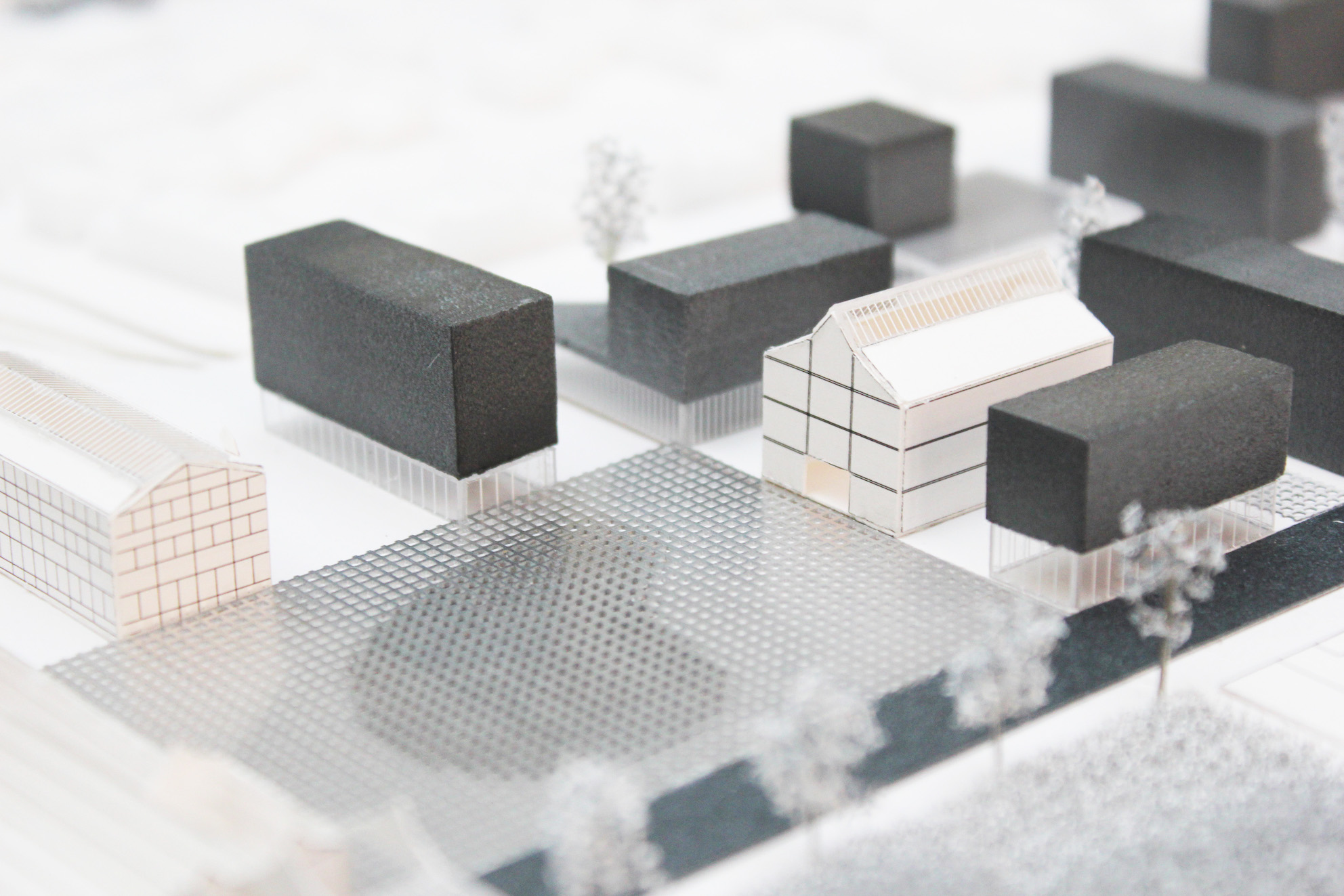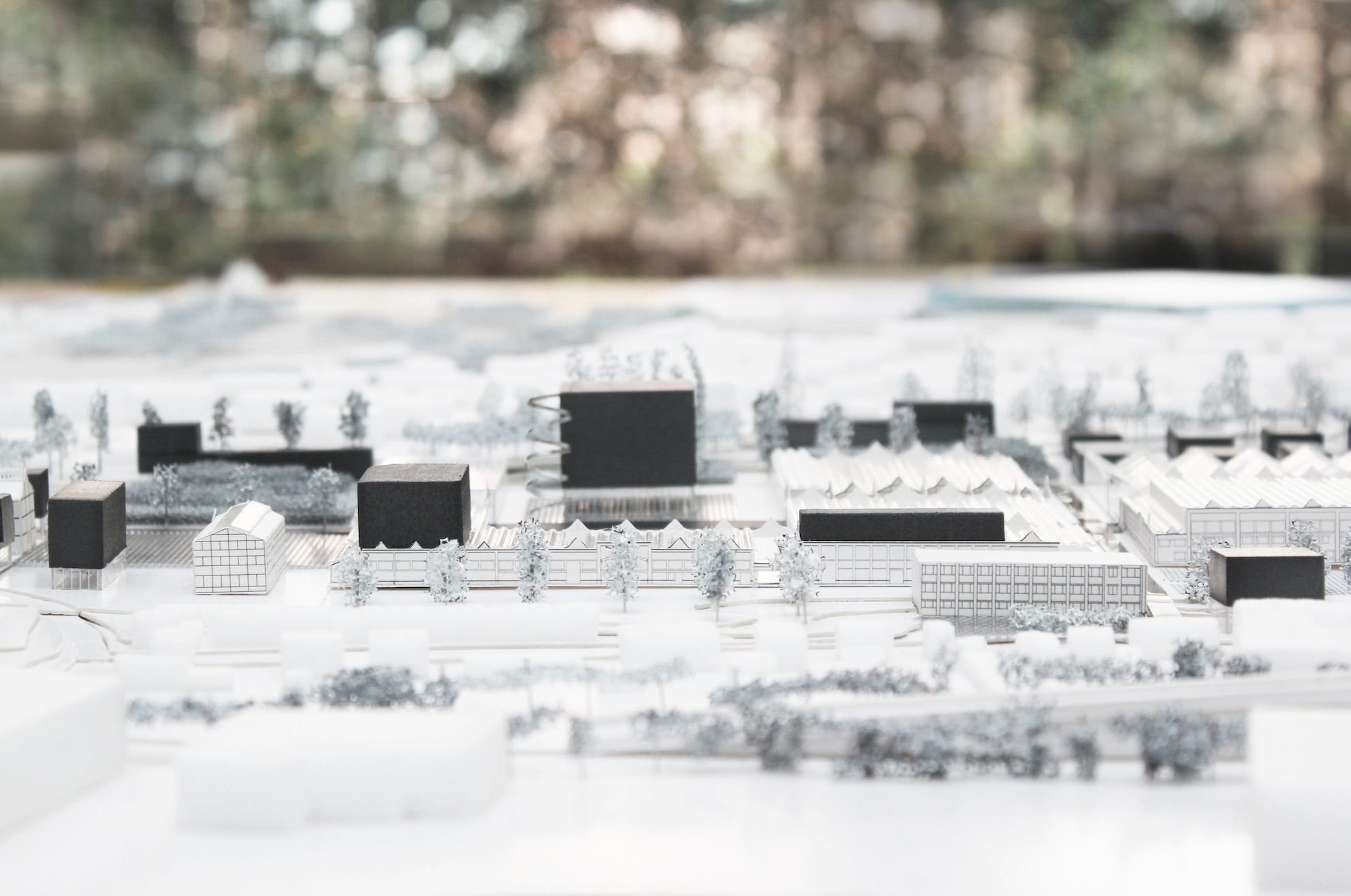 Herstal and the ACEC site are located along the Meuse, in the province of Liège, at the crossroads of the landscapes of the heart of Europe: the Ardennes south, agricultural plains in the north, the landscape of the Meuse and the landscape produced by the European mining belt. These different landscapes can be recognized at the scale of the site: the proximity of productive lands, the presence of the Meuse, the industrial heritage and the remaining trace of an old industrial railway linking the ACEC site to Herstal station, crossing the city. The project is about moving the image from the industrial city to the "green city" by focusing on innovation and inventing a new mix between housing and production. In the north part of the site a new green continuity find place: a “productive garden” is created due to the presence of “Verdir”, a research project developed by the Liege university.