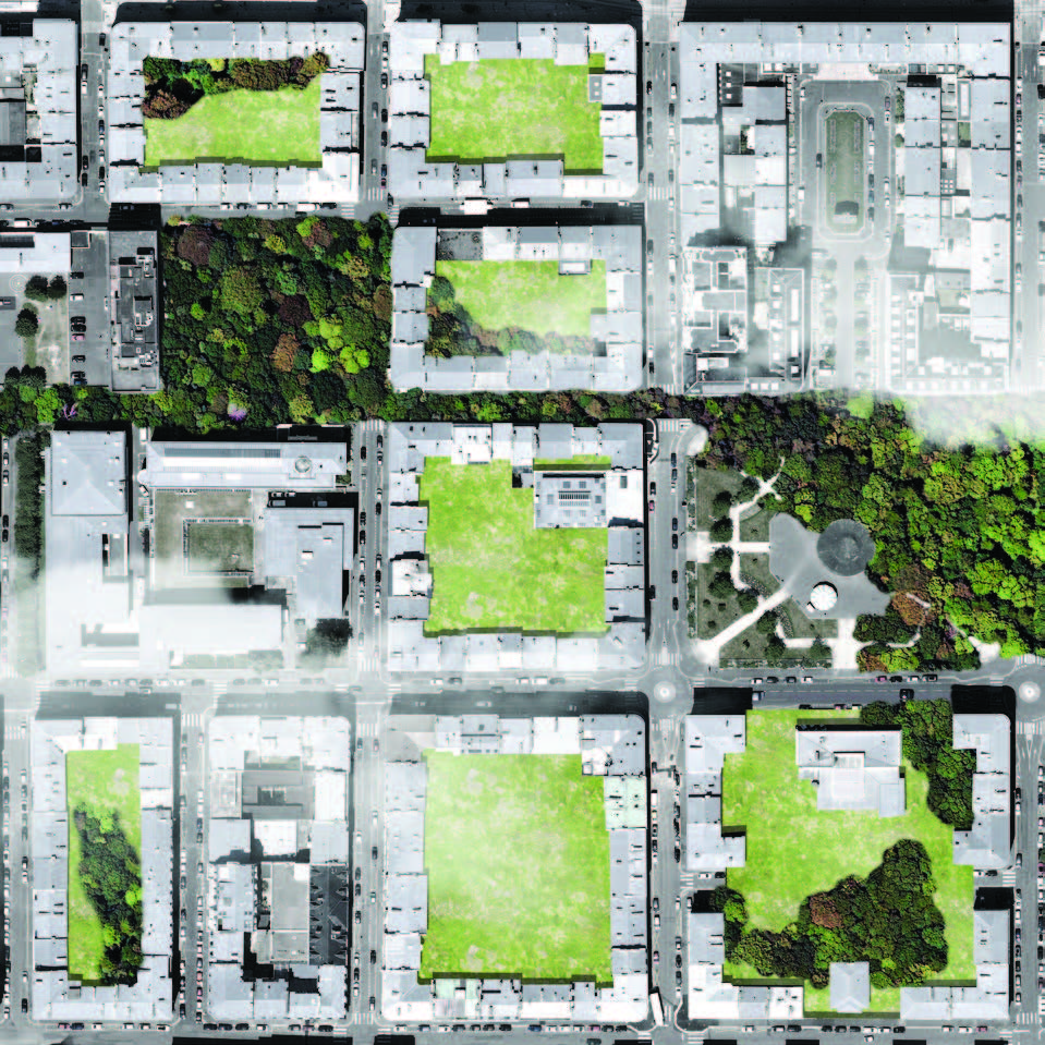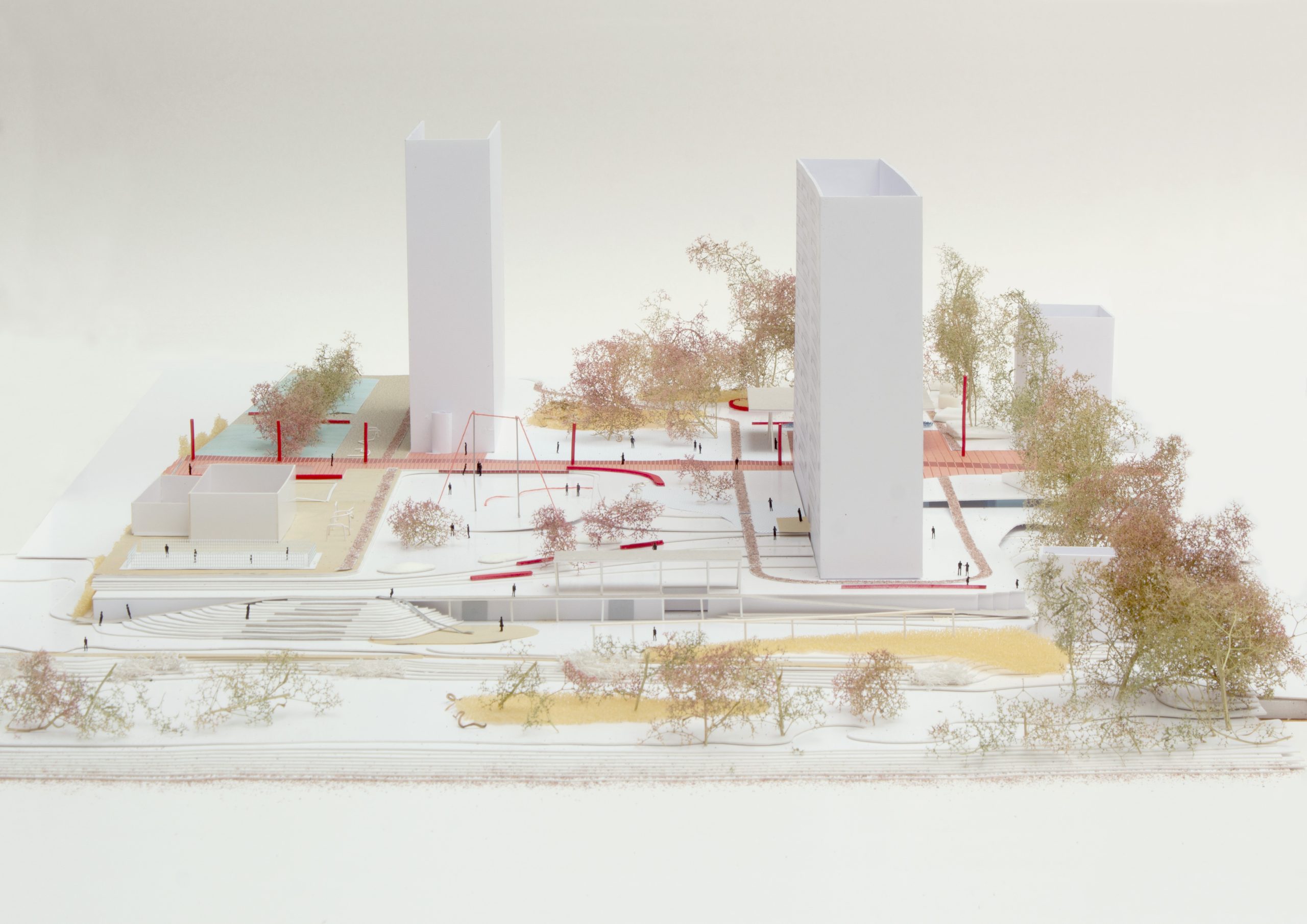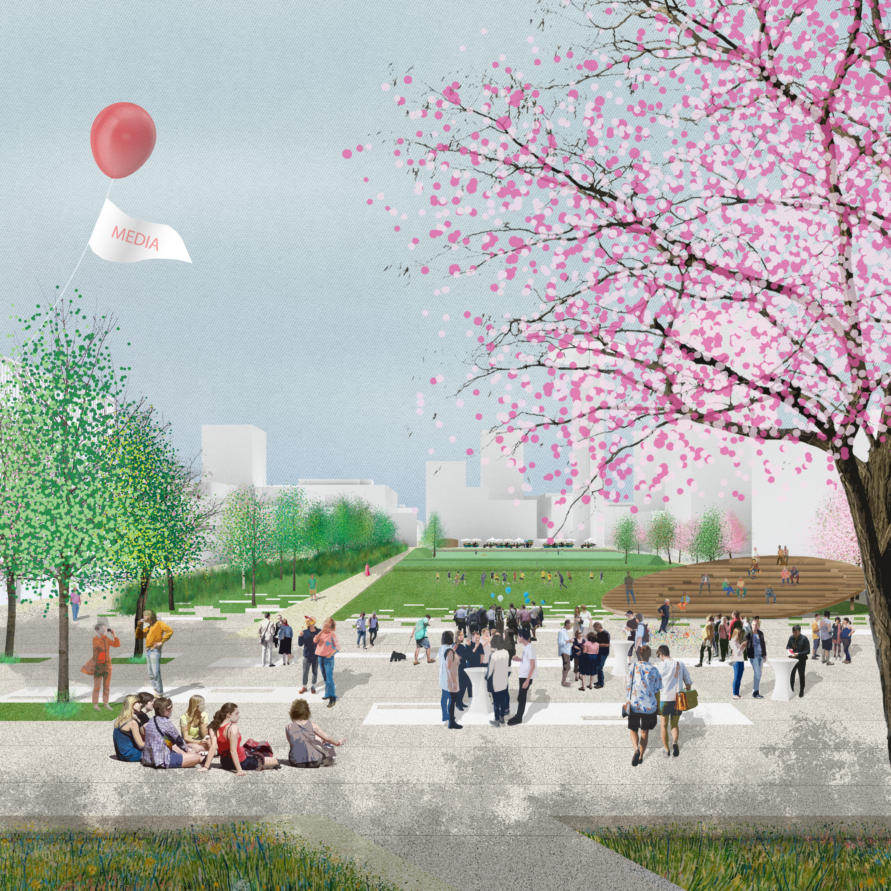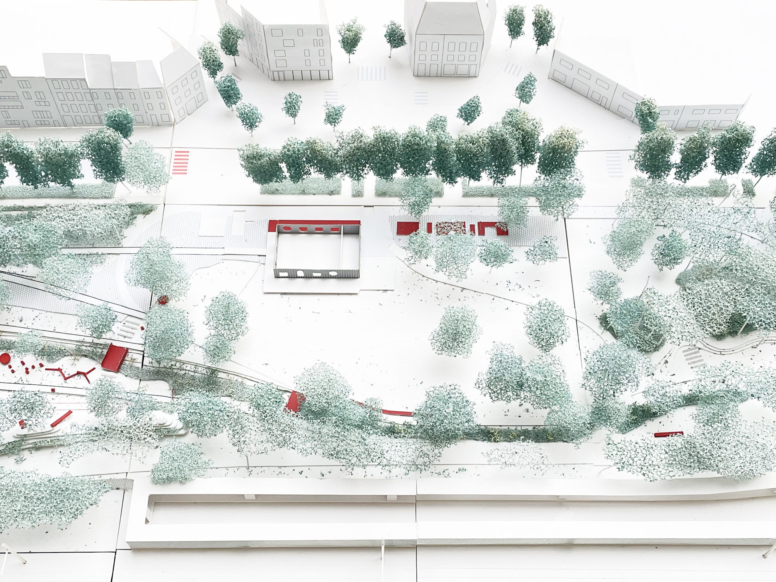 Lying between Chaussée de Louvain, Boulevard Reyers and the Liège motorway (E40) and connected by the public transport hub of Meiser and Diamant, Mediapark is one of the major strategic development of the capital region, where a cluster of some 382,000 m² new program, including 1,600 homes and related services and facilities (shops, schools, nurseries, etc.) and the development of a 30,000 m² site to accommodate 5000 workers from new businesses in the media sector and other measures. After the masterplan (2018), the design team won the design of the public space through a 2-stage international competition in 2022.