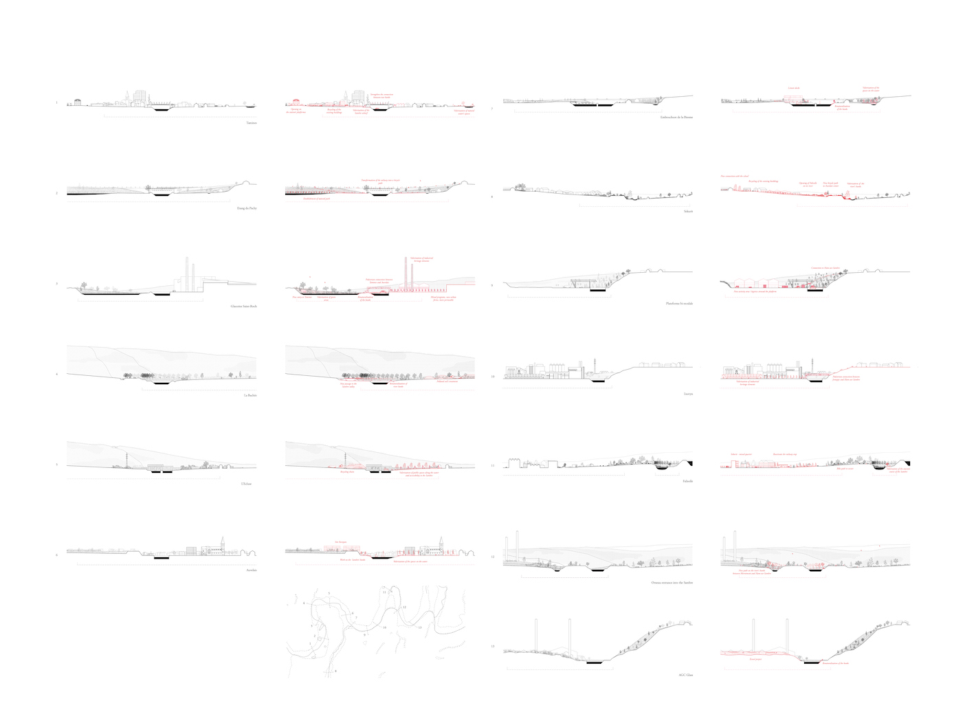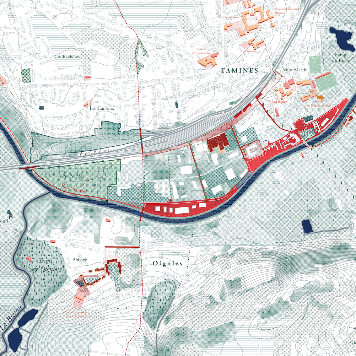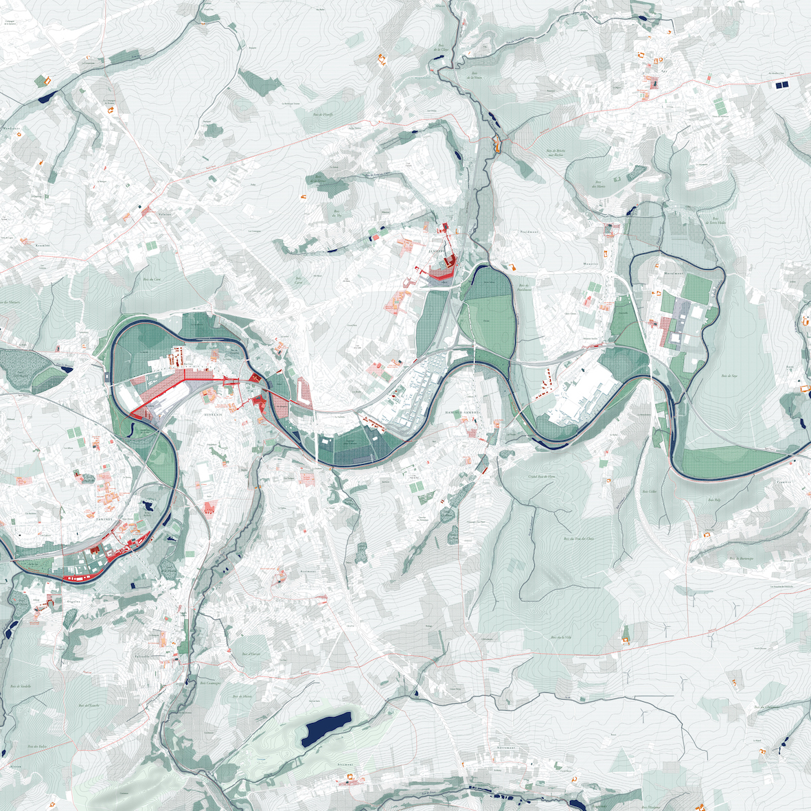The Val de Sambre, featured here, comprises the municipalities of Sambreville and Jemeppe-sur-Sambre, a city with a population of 50,000 and a particular form. It is a territory moulded by the glass and chemical industry on the one hand, and by the landscape of the Lower Sambre on the other. Its wealth derives from the connection between the dynamic residential economy of the Namur basin and the long industrial tradition of the Charleroi basin, while playing the role of hinge between the two natural regions of Condroz and Hesbaye. To rework its economic, territorial and social fabrics collectively, the Val de Sambre and its components, linked to the industrial era, must enter into a new life cycle, through a project that adheres to its population and vice versa and that enhances the important spatial and social capital present in the territory. The exceptional landscape of both the main valley and its secondary valley, the quality of the habitat in relation to the landscape, as well as the phenomenon of metropolisation currently in progress in Walloon Brabant, the proximity