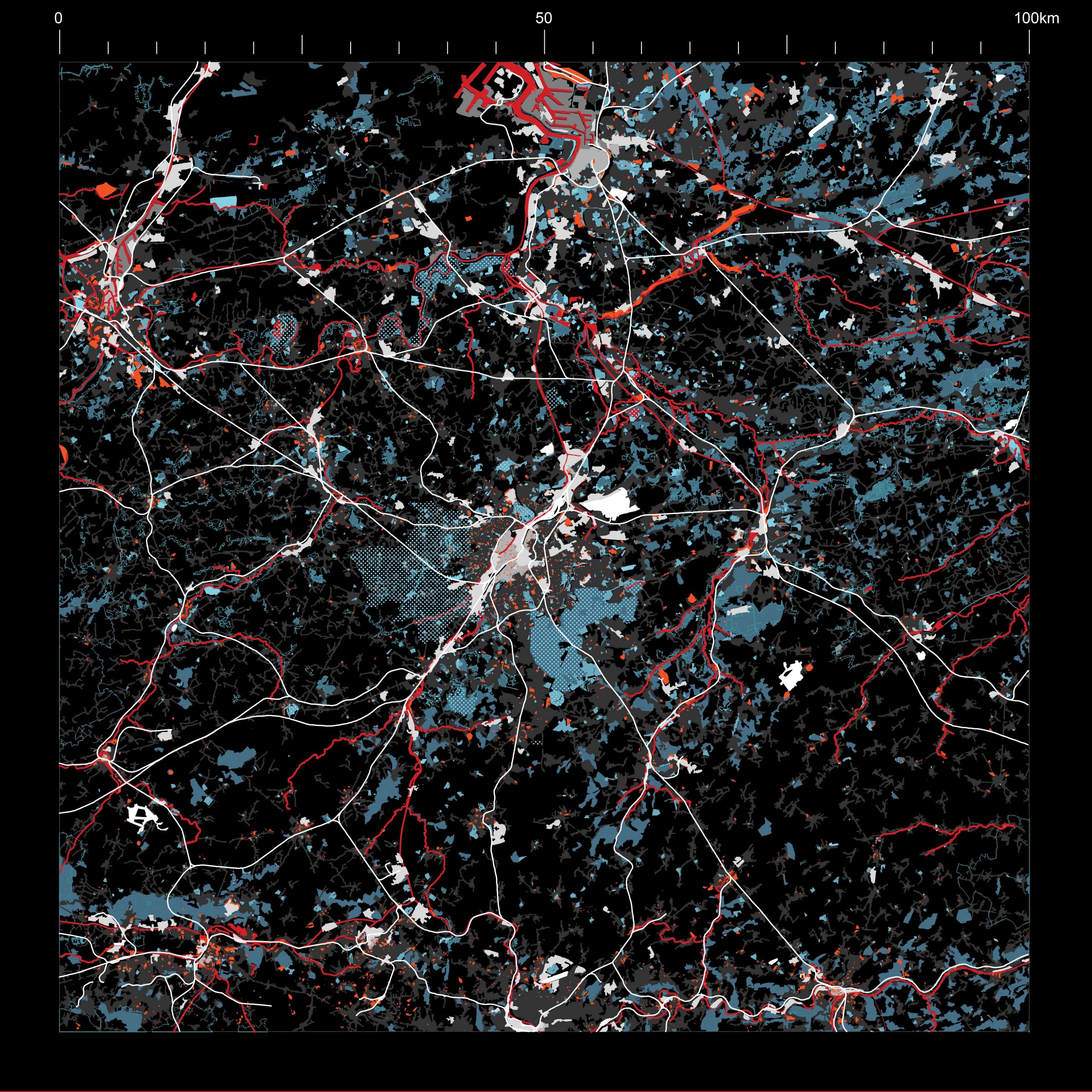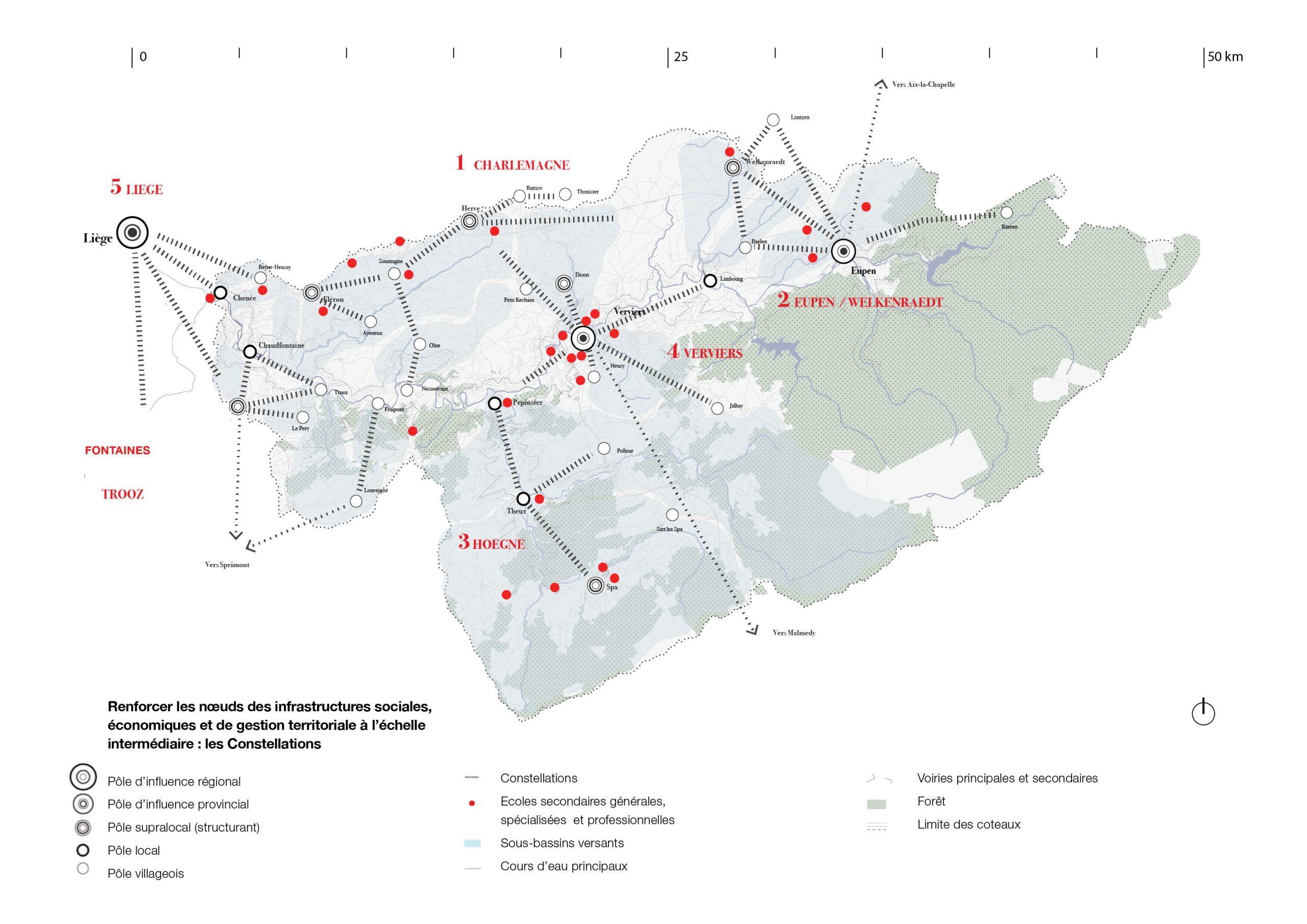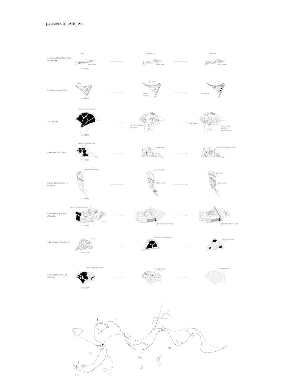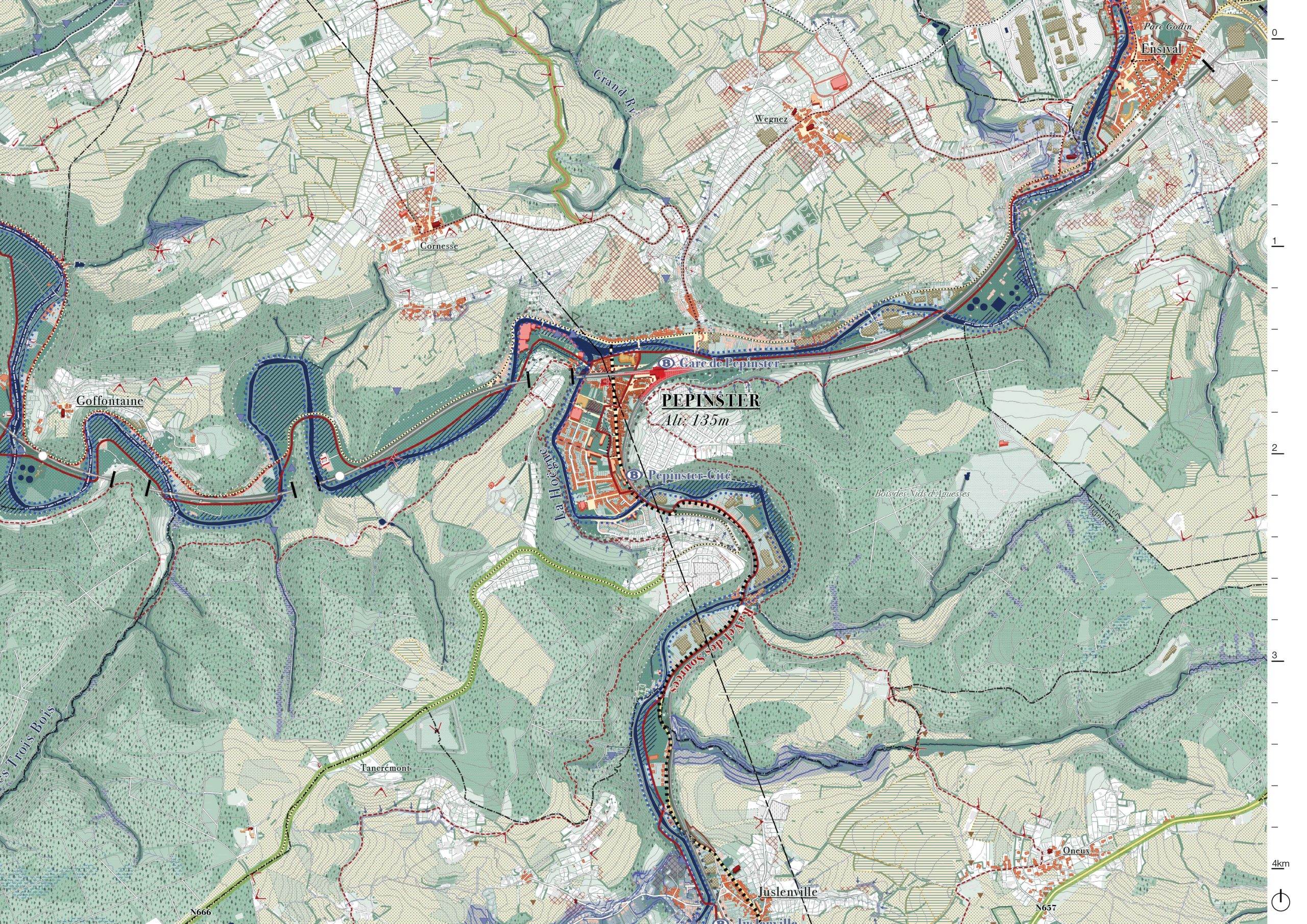 The Val de Sambre, featured here, comprises the municipalities of Sambreville and Jemeppe-sur-Sambre, a city with a population of 50,000 and a particular form. It is a territory moulded by the glass and chemical industry on the one hand, and by the landscape of the Lower Sambre on the other. Its wealth derives from the connection between the dynamic residential economy of the Namur basin and the long industrial tradition of the Charleroi basin, while playing the role of hinge between the two natural regions of Condroz and Hesbaye. To rework its economic, territorial and social fabrics collectively, the Val de Sambre and its components, linked to the industrial era, must enter into a new life cycle, through a project that adheres to its population and vice versa and that enhances the important spatial and social capital present in the territory. The exceptional landscape of both the main valley and its secondary valley, the quality of the habitat in relation to the landscape, as well as the phenomenon of metropolisation currently in progress in Walloon Brabant, the proximity
