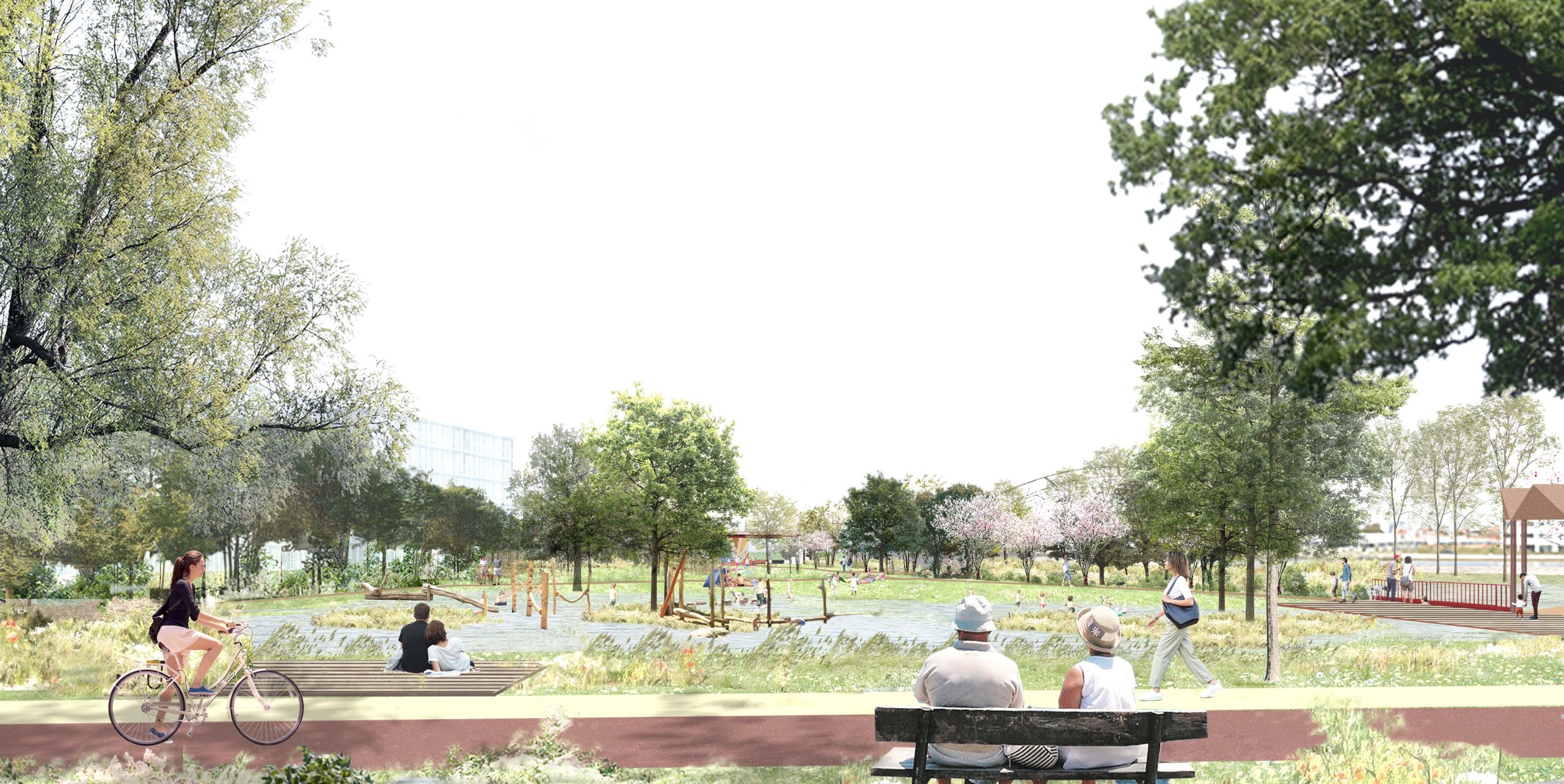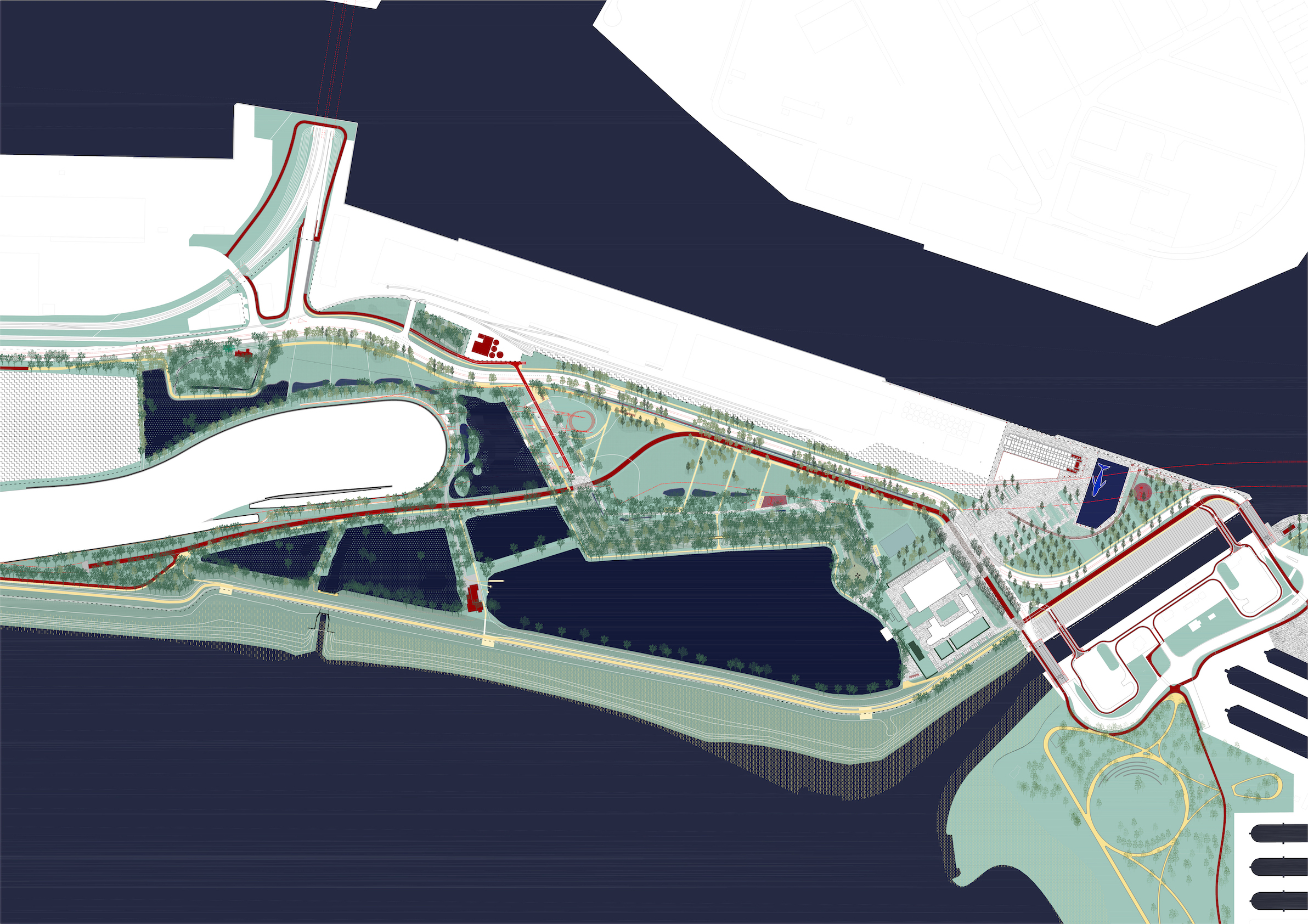 The Over De Ring project, or the landscape design on/around the capping of the ring of Antwerp, is a historical opportunity in transforming the city/territory and creating a resilient landscape for the social/environmental/urban transitions. After working on the vision of the Southeast segment. the team is selected to design Ringpark Noordkasteel and Ringpark Lobroekdok through competitions, both involves a great complexity, not only in terms of technical issues on the underground/upper ground relations, the long timing of the infrastructure/landscape realization, sustainable mobility, natural and artificial water management, creative energy vision, the creation and maintenance of landscape, but also in terms of establishing a new identity of public space interrupted by large-scale infrastructure, a balance between metropolitan programs and local needs, and a resilient and future-proof spatial framework which can contribute to the transition to a CO2 Zero future and the mobility model-split, through the creation of a “Techno-Nature”. The team works in a strong interdisciplinary character in design and management, both internally and externally.