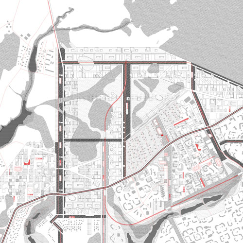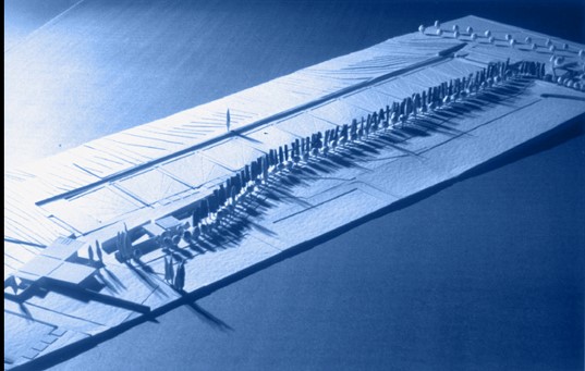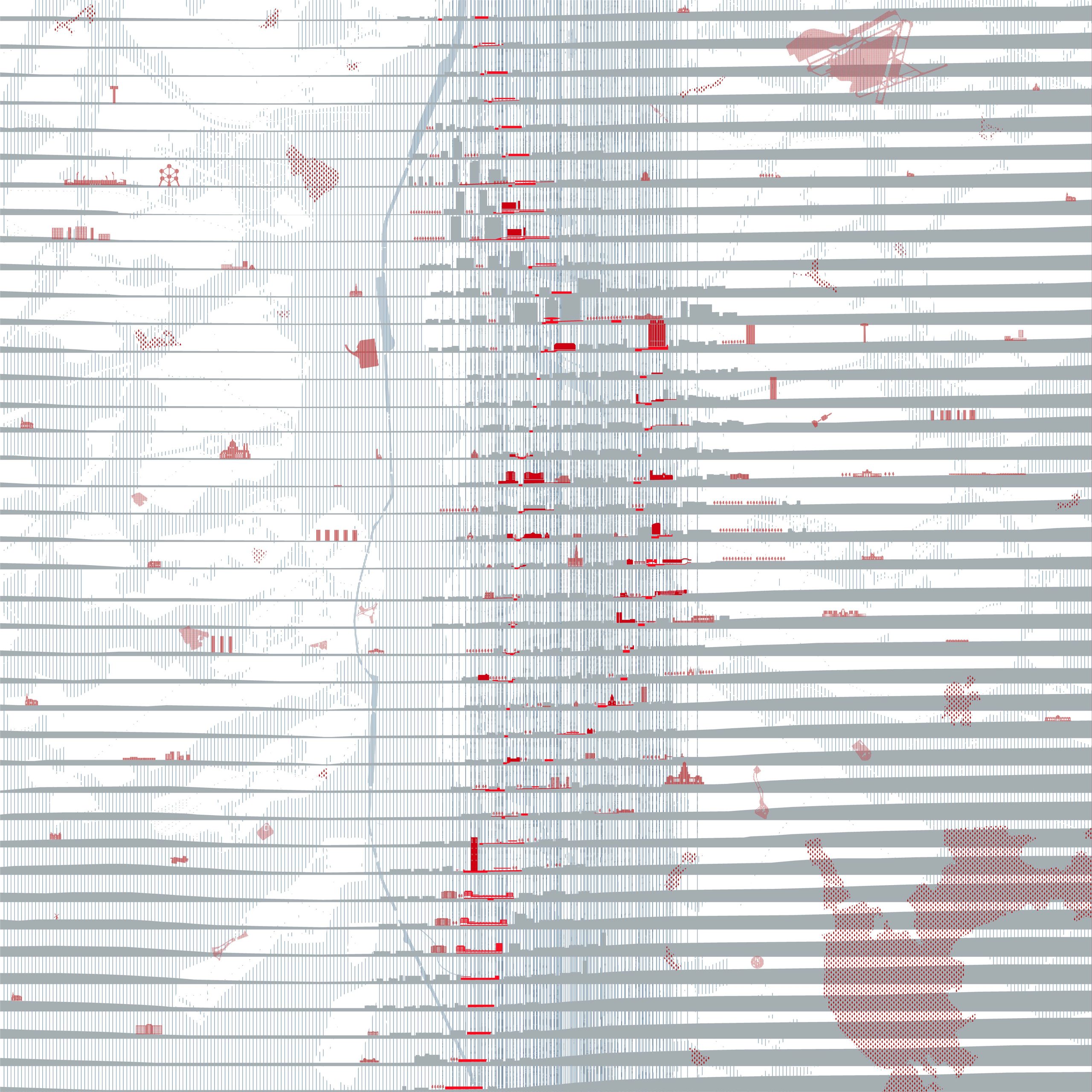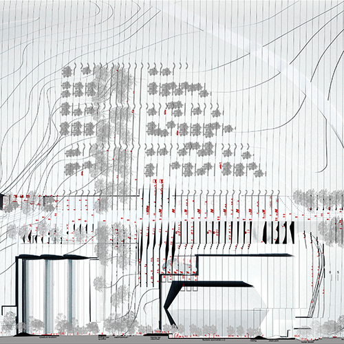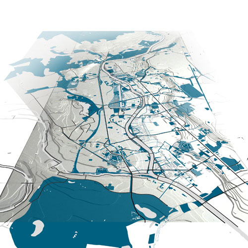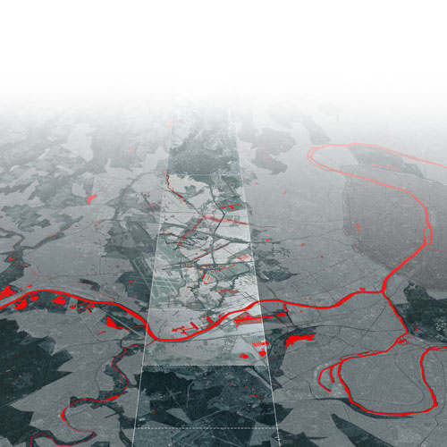 The concept of the park has always been a way to simultaneously evaluate the city and the natural environment. The restructuring process relies on a strategy of sharing spaces. A new space fragmentation leads to new dimensions that are more flexible and adaptable over time. Structure is chosen as the framework to guide the conversion process. The size and direction of the network is connected to the way the site drainage is achieved: a drainage system oriented along the direction of the water and following the main direction of the plain north of Milan. S-parkling is a park whose spine is made up of industrial roads that have been shaped by the movement of industrial machinery. S-parkling is then one of the ecologies of the project, together with the porous city, the islands of high technology and ecological linkage of the Lambro River where multiple programs work together. S-parkling won the 1999 first prize in the international competition.