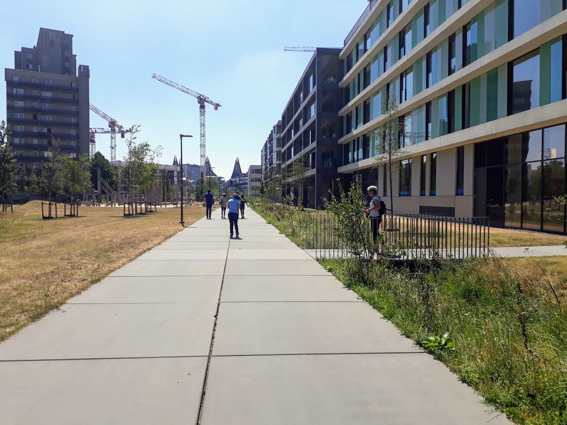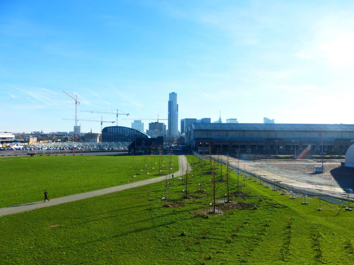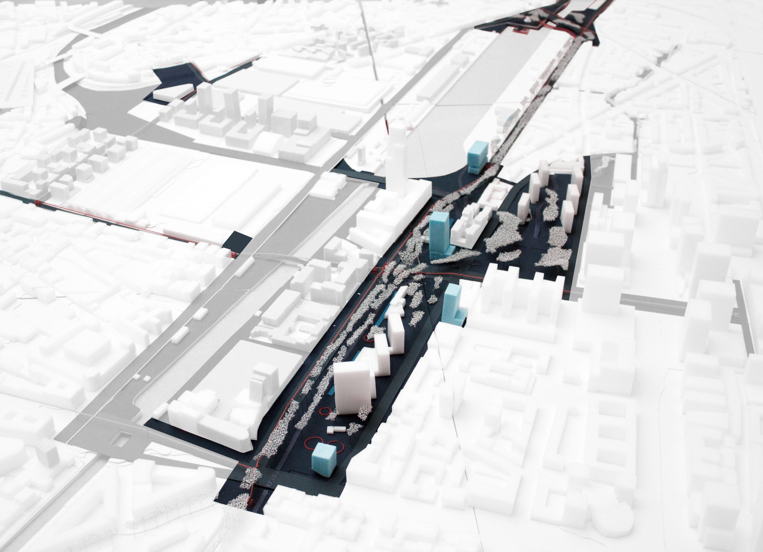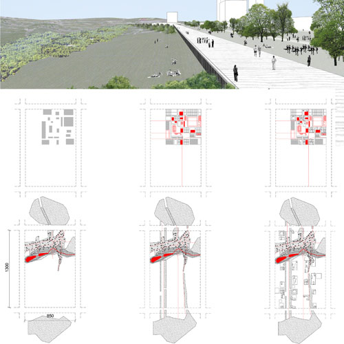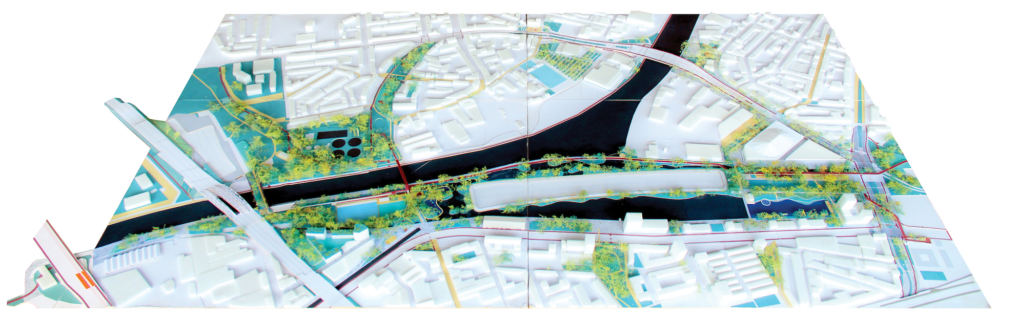 Nowadays a park is a «social space», a place for many everyday activities, a city part that can specially contribute to give a clear structure to the whole city and metropolis. The project for the new park in an area (about 24 ha) previously used by Belgian national rails is characterized by: -un uninterrupted space along the previous platform (1,7 km) to maintain the possibility of a connection (ecological as well as of communication) between Schelde river and the huge cultivated fringe spaces of the city. - the concentration of planned surfaces (200.000 m2 of housing, equipment’s, offices and commerce) in the west part towards the big boulevards. Two principles of implantation could co-exist at the same time: the campus (free objects in a park) and the tissue (the idea of an urban continuity). Here they are proposed as provisional conditions, with possible succession and not opposed to each other. Design of open spaces was conceived as in a constant natural evolution, in harmony with the process of implementation and life that will take place in it. - the integration of the two existing viaducts in a new topography that had also the secondary but important purpose of promoting the clearance of coal ashes polluted land.