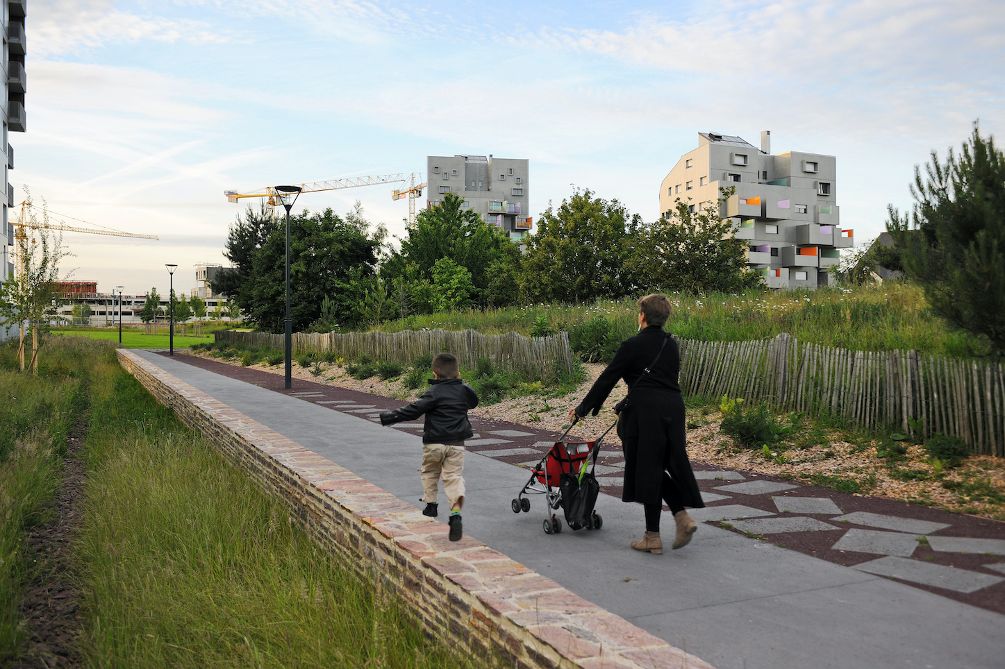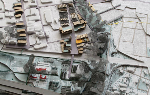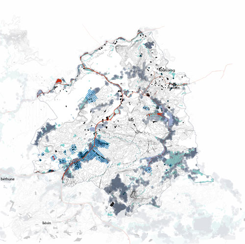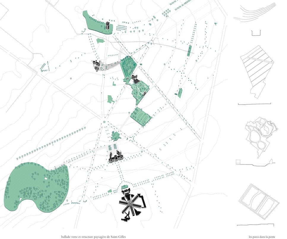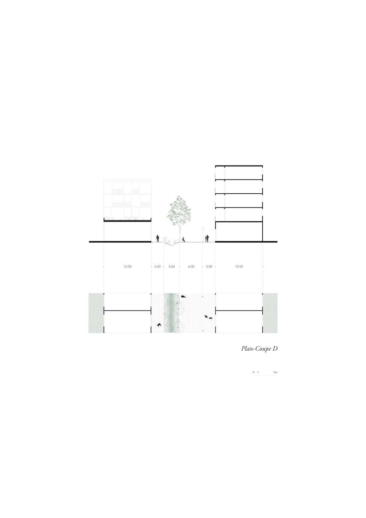 Rennes, Brittany region capital, is a fast-growing city and, as a consequence, is subject to a strong housing and equipment demand. The query of the assignment was for a new city part design (140 ha, 4500 new housings, 100.000 m2 of service, the necessary equipment…) in a previous military area characterized by an important natural asset. Based on a careful observation of places and topography, the project claims the necessity of considering the different ways and styles of life and mix them (''mixité'' concept); it considers the orientation of different buildings and their projected shadows, first step for an in-depth study of energetic problems. That's why this peculiar project stands up against the rhetoric of iconic architectural solutions and try to give an answer to the functional, social, and visual complexity of contemporary society. A project of this scale, that mobilises a number of actors and means, cannot be realized in a short time; it requires a flexible and strategic approach that allows a phase implementation. For these reasons parts of the project are conceived as definitive, for example the design of the open spaces giving a strong structure to the urban space, other parts, like buildings and private gardens, as more flexible units, where future changes can happen. In the first case the project principal element is the 'green stream': a system of large open spaces that links the centre of the city to the country side through the Courrouze area; in the second case it is the sequence of private spaces, semi-private and public gardens: the patchwork of mixed uses placed side to side with the different building types.