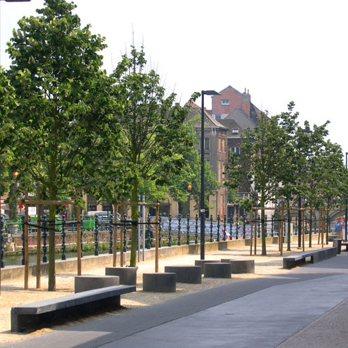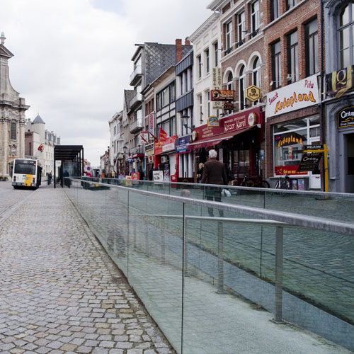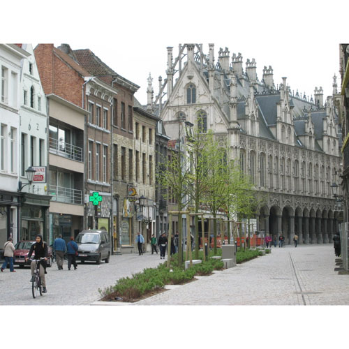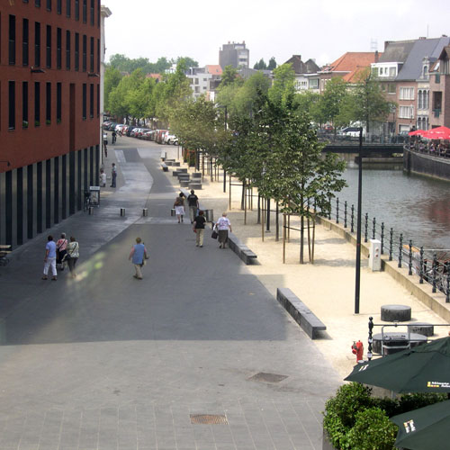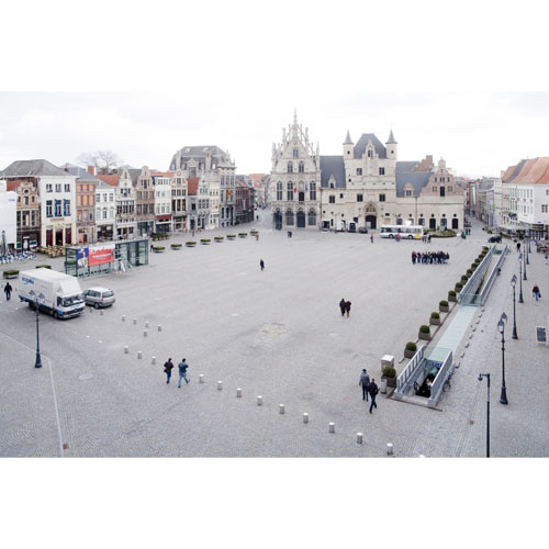 From the Veemarkt to the cathedral of Sint Rombouts the open spaces go through the most internal and old area of the city; orthogonal to these spaces an axis links the north and south gate of the city, the Dijle river at the south and the old canal which substituted it to the north. All along these axes, between the Cattle Market and the Cathedral, there are the most significant places of the city: the cathedral, the old city hall, the Big Square, the new city hall and the market. Defined by the very architecture front, these spaces invited a silent design, minimal, but very carefully-treated that enables the more various social practices to take place. A design that uses the minimal level differences of the ground to give an identity to the different parts of these spaces (the places of the terraces and the cafés, the waiting places and the bus routes, the places of relaxing and rest) and which makes effort to include the spaces of existing underground parking in the logic of public space, with slits that can give natural light to the underground.