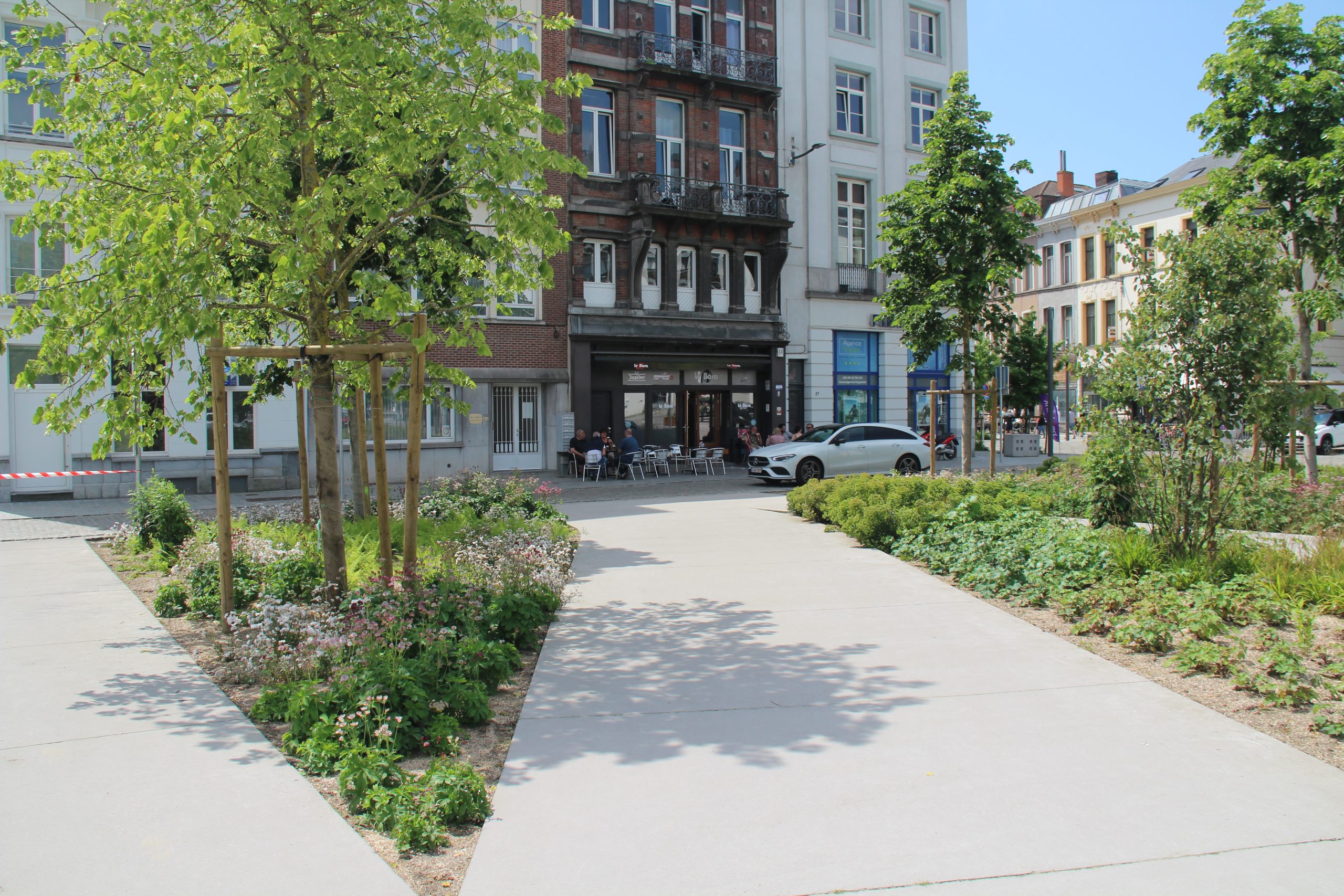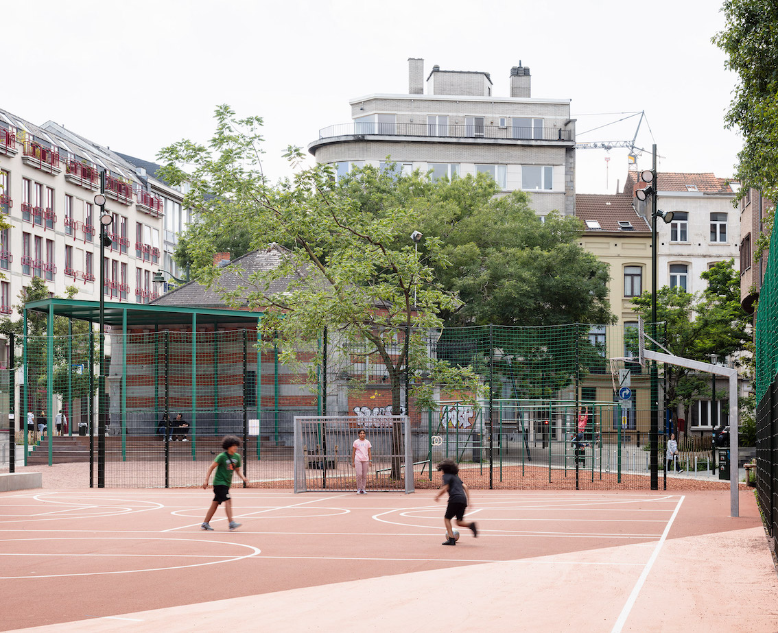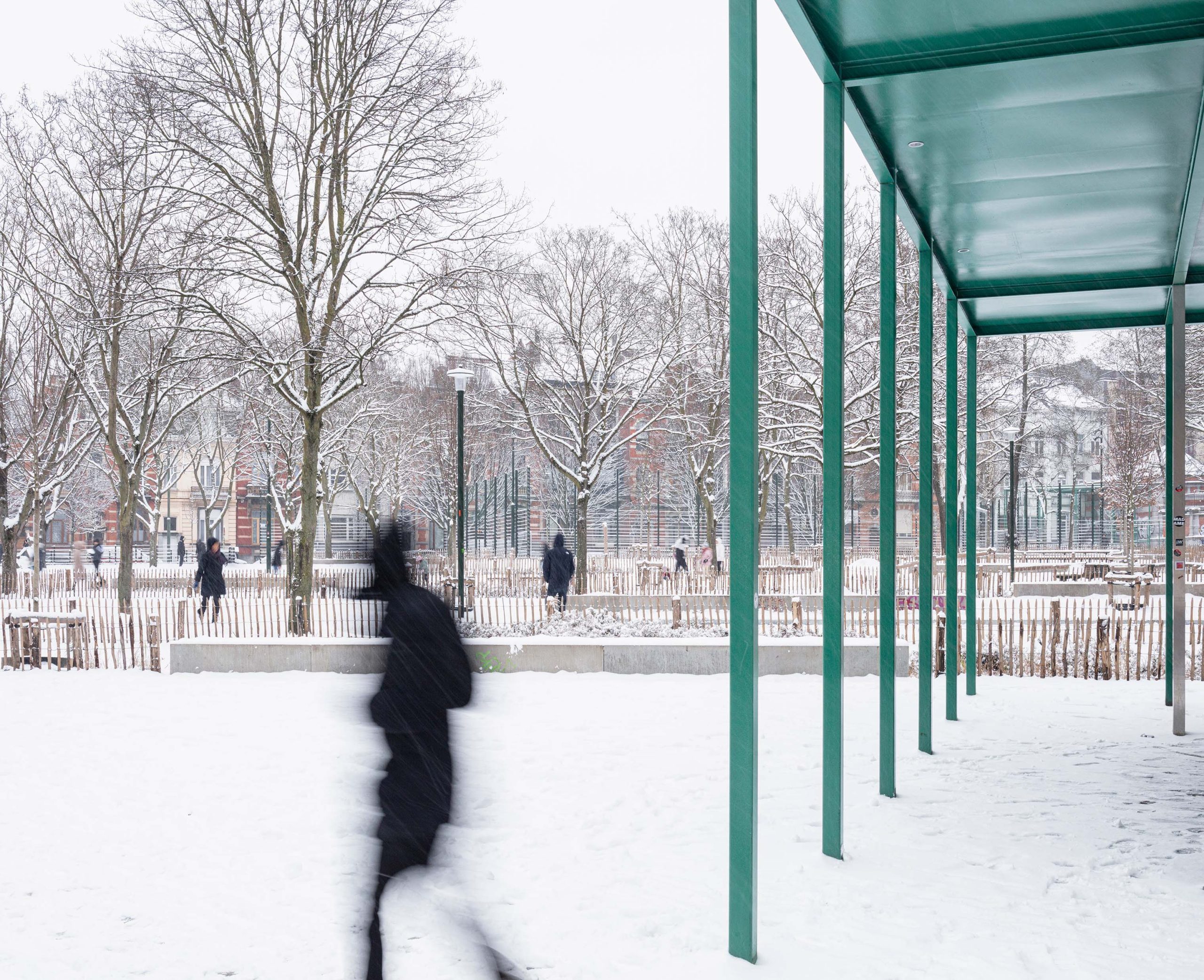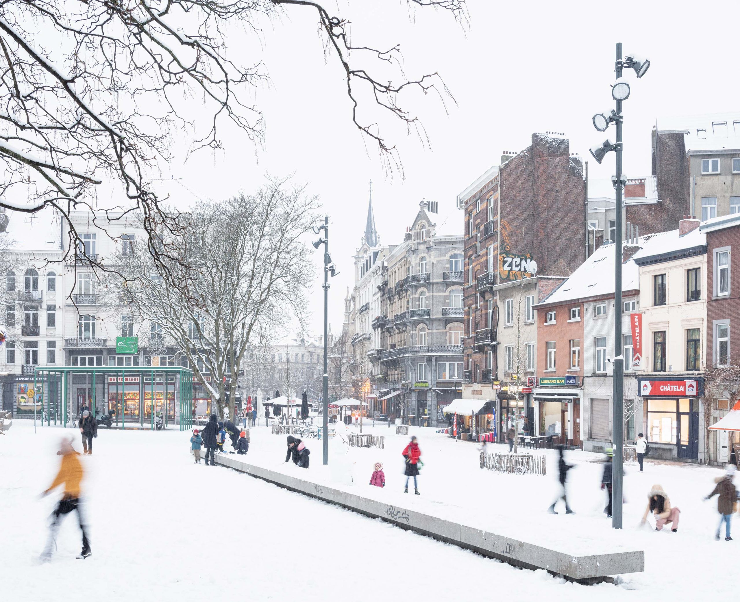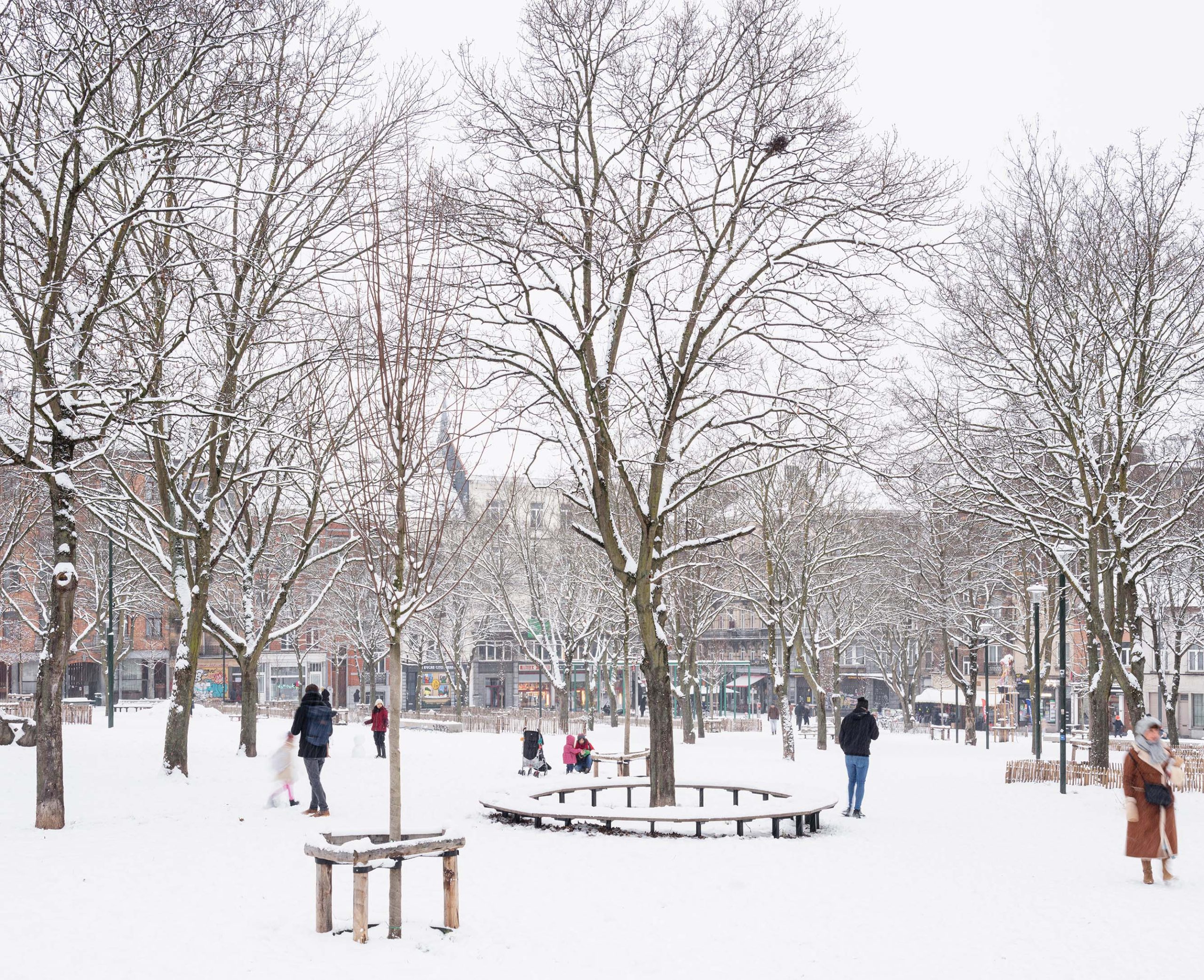 The Square Marie Janson is part of a sequence of large public spaces on the slope of Saint-Gilles. This project aims to translate from reflections on the soil of the city, the various questions raised by the public space of today and tomorrow, particularly on the aspects of water, pollution, car space, reuse of materials and uses. It is a long-term approach, which has defined this park as being designed for a century, capable of integrating the different evolutions of time.