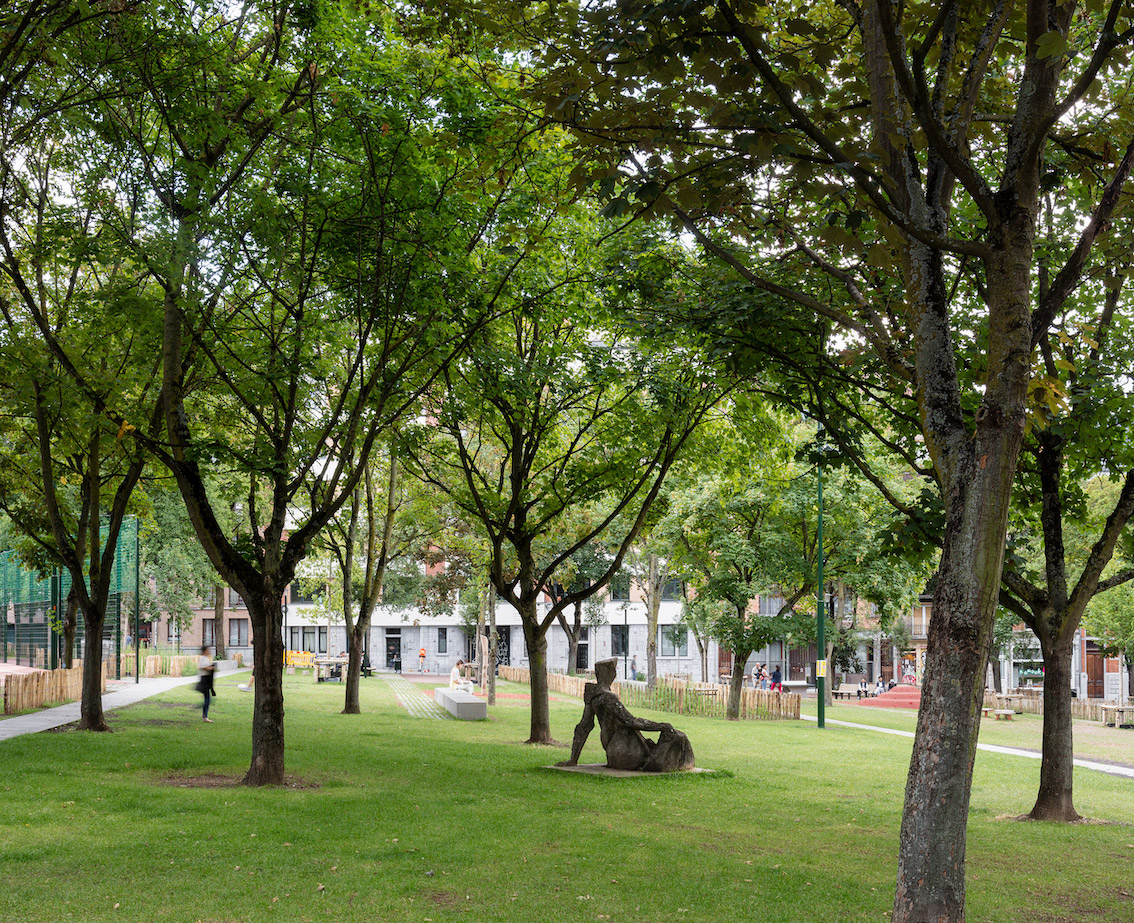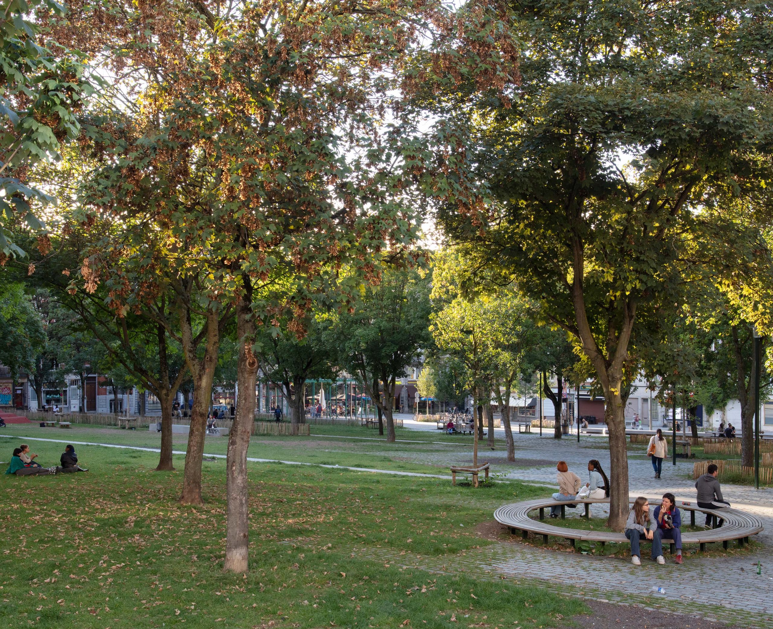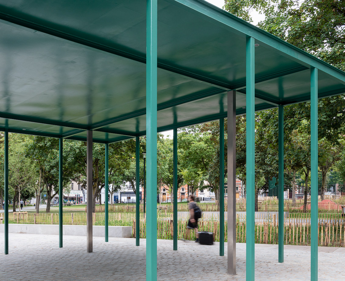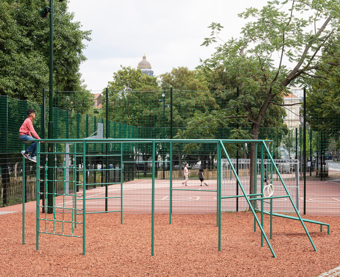 The Square Marie Janson is part of a sequence of large public spaces on the slope of Saint-Gilles. This project aims to translate from reflections on the soil of the city, the various questions raised by the public space of today and tomorrow, particularly on the aspects of water, pollution, car space, reuse of materials and uses. It is a long-term approach, which has defined this park as being designed for a century, capable of integrating the different evolutions of time.