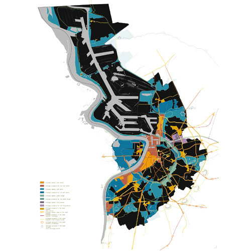 the new structure plan study for the city of Antwerp; a strategic and pioneer plan for urban planning tradition of Flanders. The city of Antwerp lived splendid ages, not only in the 19th century, but also more recently in the 20’s and 30’s until the 60’s. Since then, a substantial part of its population has abandoned the city and moved to the countryside. A huge part of the city centre was occupied by new population with very different origins. All that and the lack of politics for integration has provoked a social tension that caused a visible, even though ambiguous, decline of the city in the last 2 decades. «Comment vivre ensemble» “How to live together” becomes the principal theme of the plan. This goal cannot find its solution in an urban plan only, even though it is conceived with a strong commitment in social and economic issues. But it can help if it's able to find the strategies and the priority interventions and study their feasibility on site and through time. The plan is conceived through two ideal means: on one side the 'images', on the other side the 'scenarios'. The 'images', based on both the city history and more recent interesting reflections (like the ecological ones) are the guidelines for future action and in particular for the construction of a 'vision'; the 'scenarios', are a “what could happen if ….” Analysis system: they allow to push further the project through a collective involvement of city actors and users getting over traditional exclusively data-based previsions. In this framework the plan adopts a strategy of renovatio urbis: in a general structure of urban space strategic projects are developed