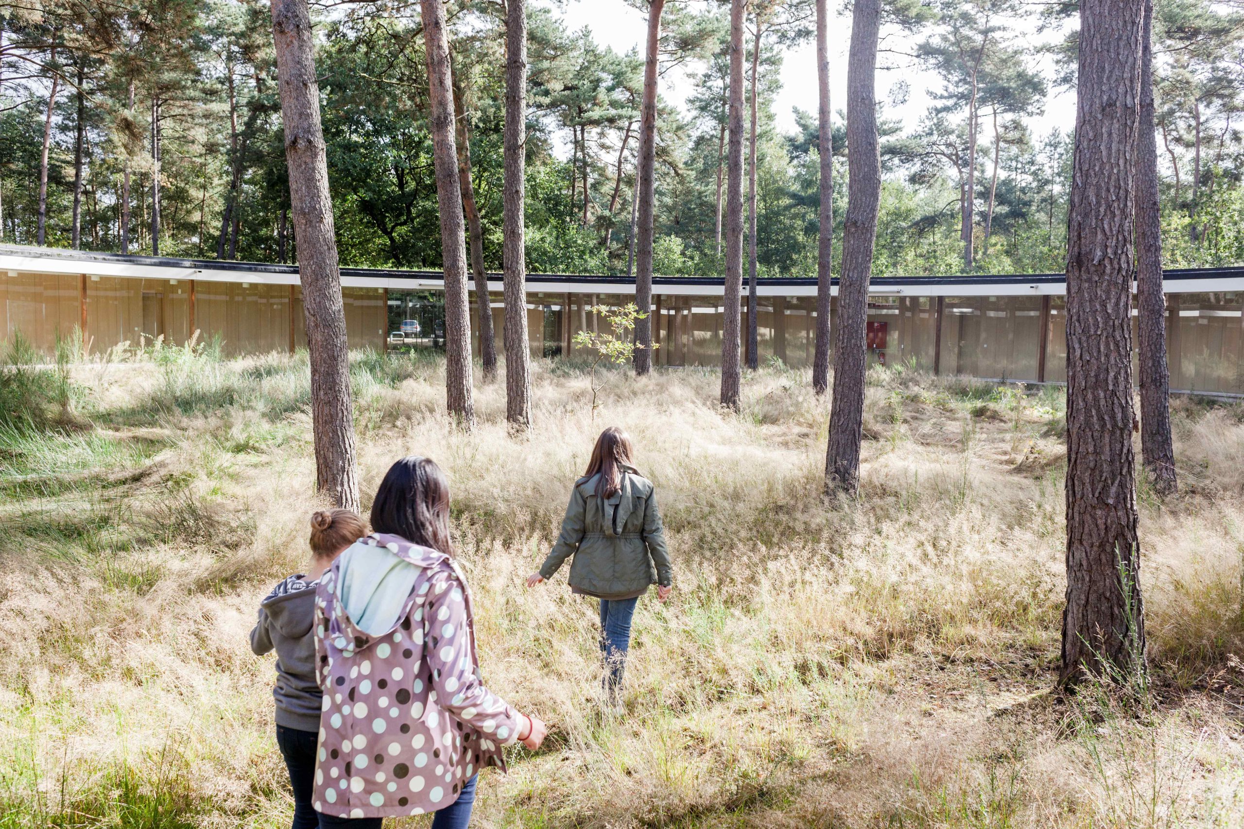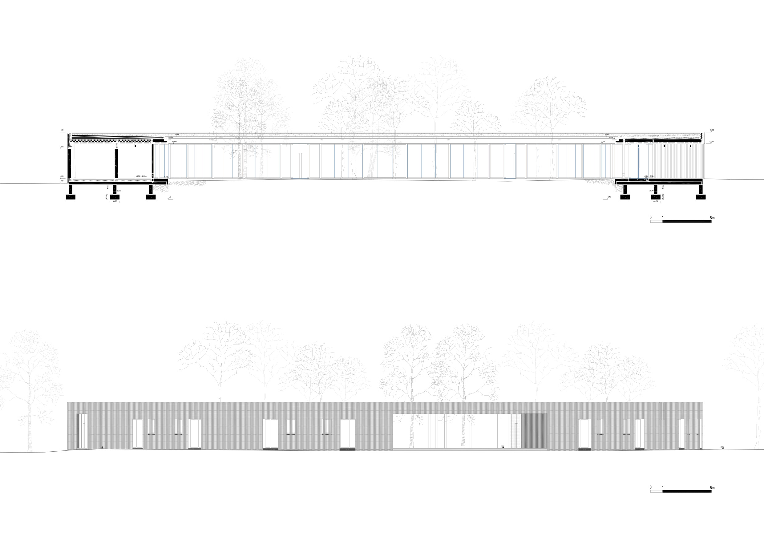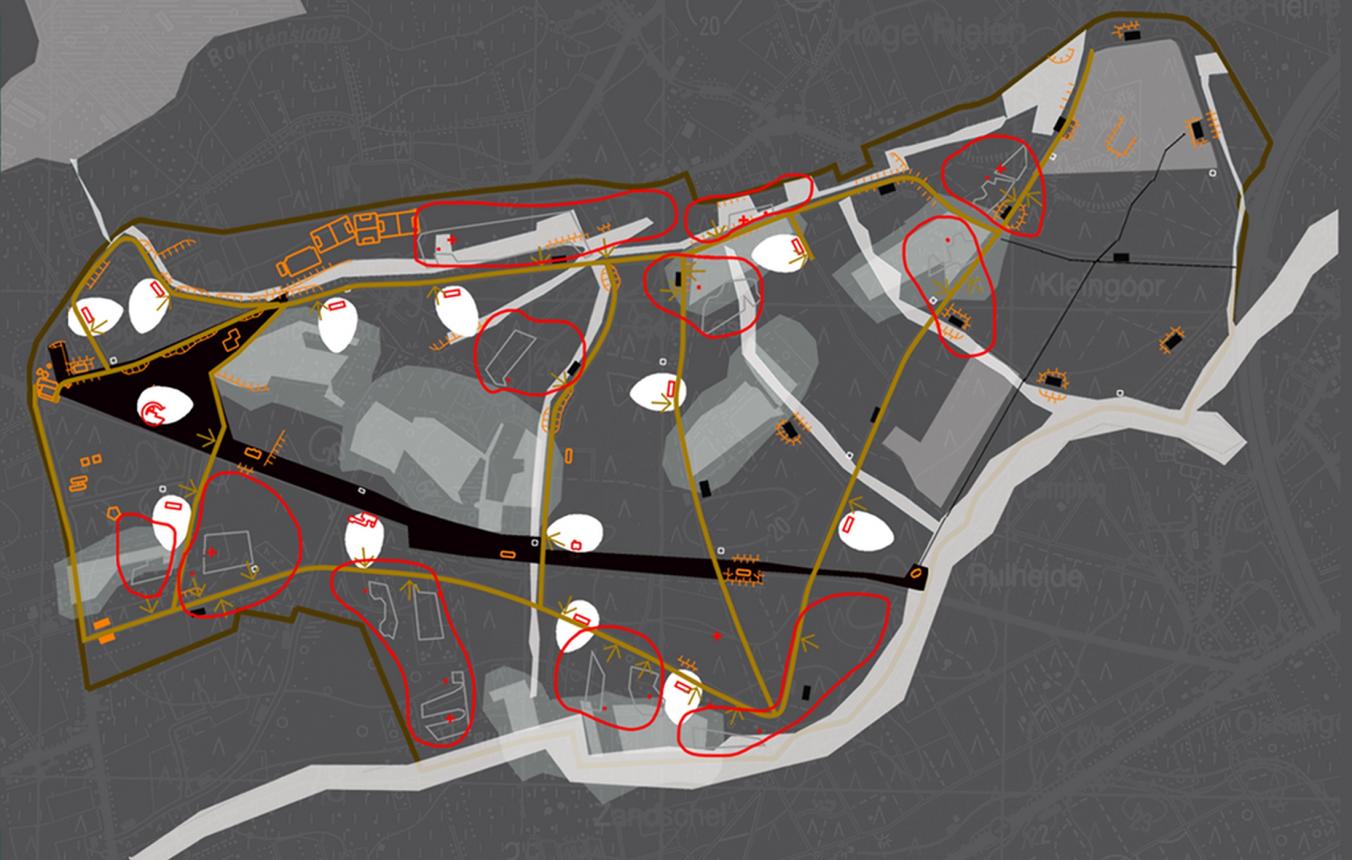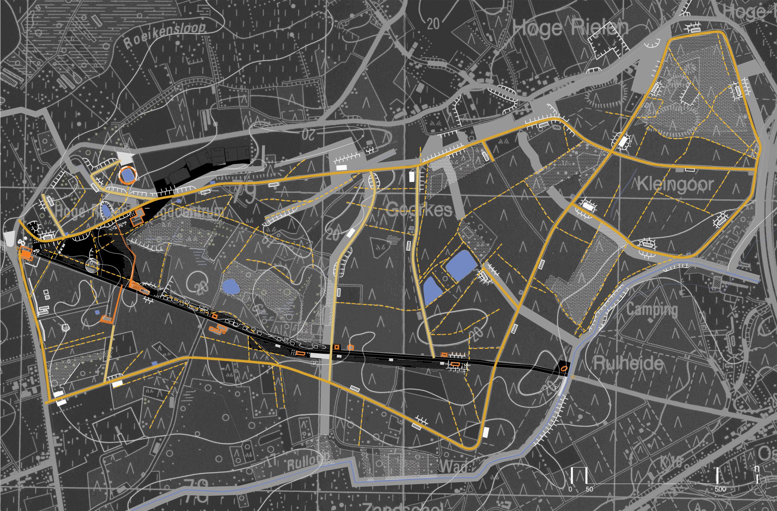 Hoge Rielen was a military camp during the World War II. Protected sheds, pools of water in case of accident ... all this inside a forest once exploited for its timber, necessary material for the neighbouring metallurgical plants. After the war Hoge Rielen was transformed into a reception area for youth internships and summer camps. This destination has remained unchanged until today, but the success of the camp brought the need to improve the site. Some specific actions such as the expansion of the sheds, the renewal of the theatre, the building of a small hotel, the design of a versatile venue, etc…and general environmental improvements like water management, vegetation, footpaths and sports fields maintenance were considered in the project. The master plan, resulting from the competition winner project, currently under construction, pays great attention to atmospheres that are encounter in the camp and refer to the main present elements: the military background, the nature and the today’s young people who inhabit the place. Following the master plan Studio has developed detailed plans for the 'Contact Strip', the Hostel, the renovation of the theatre and the poly -functional site.