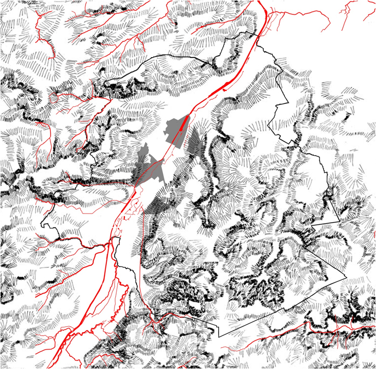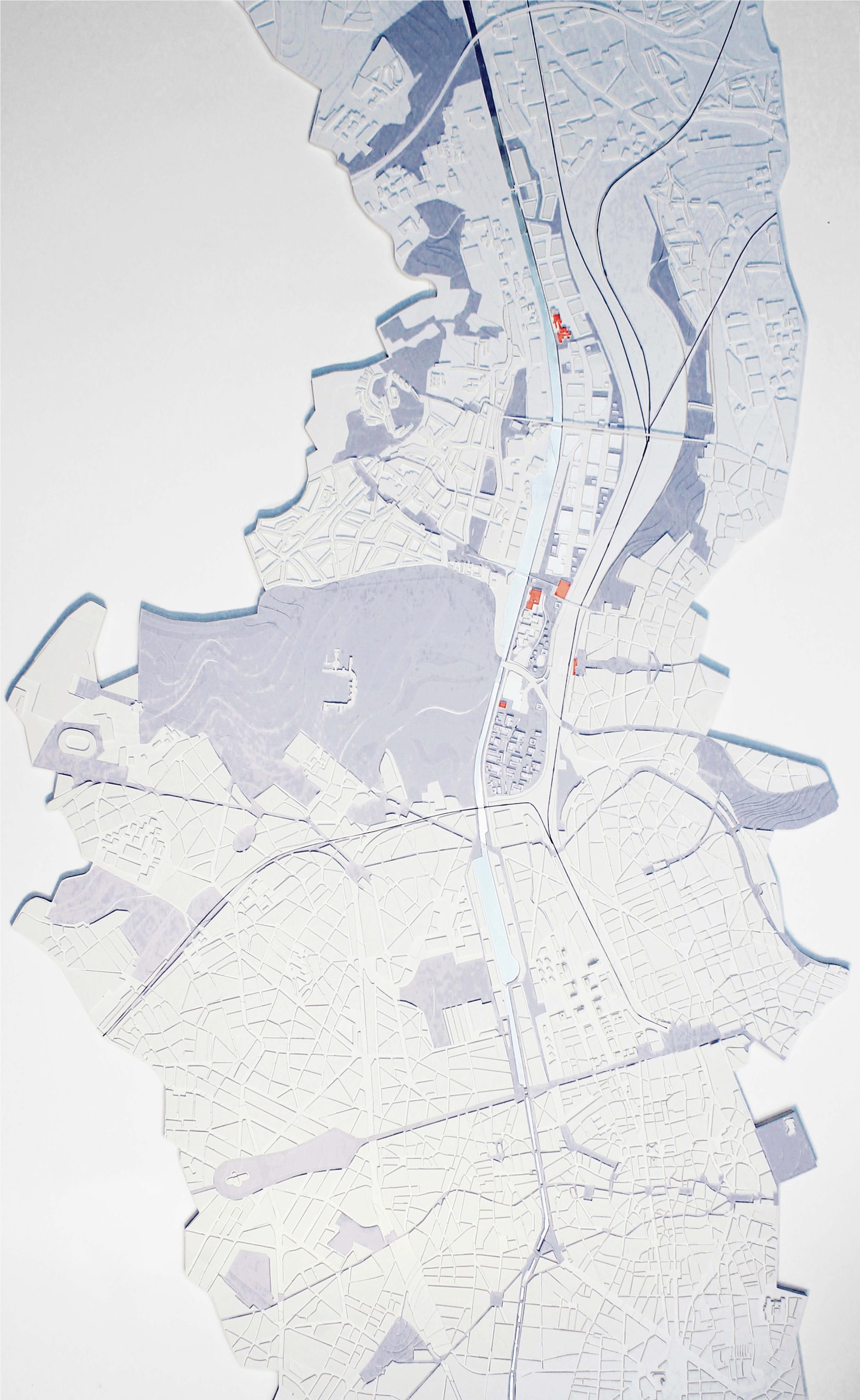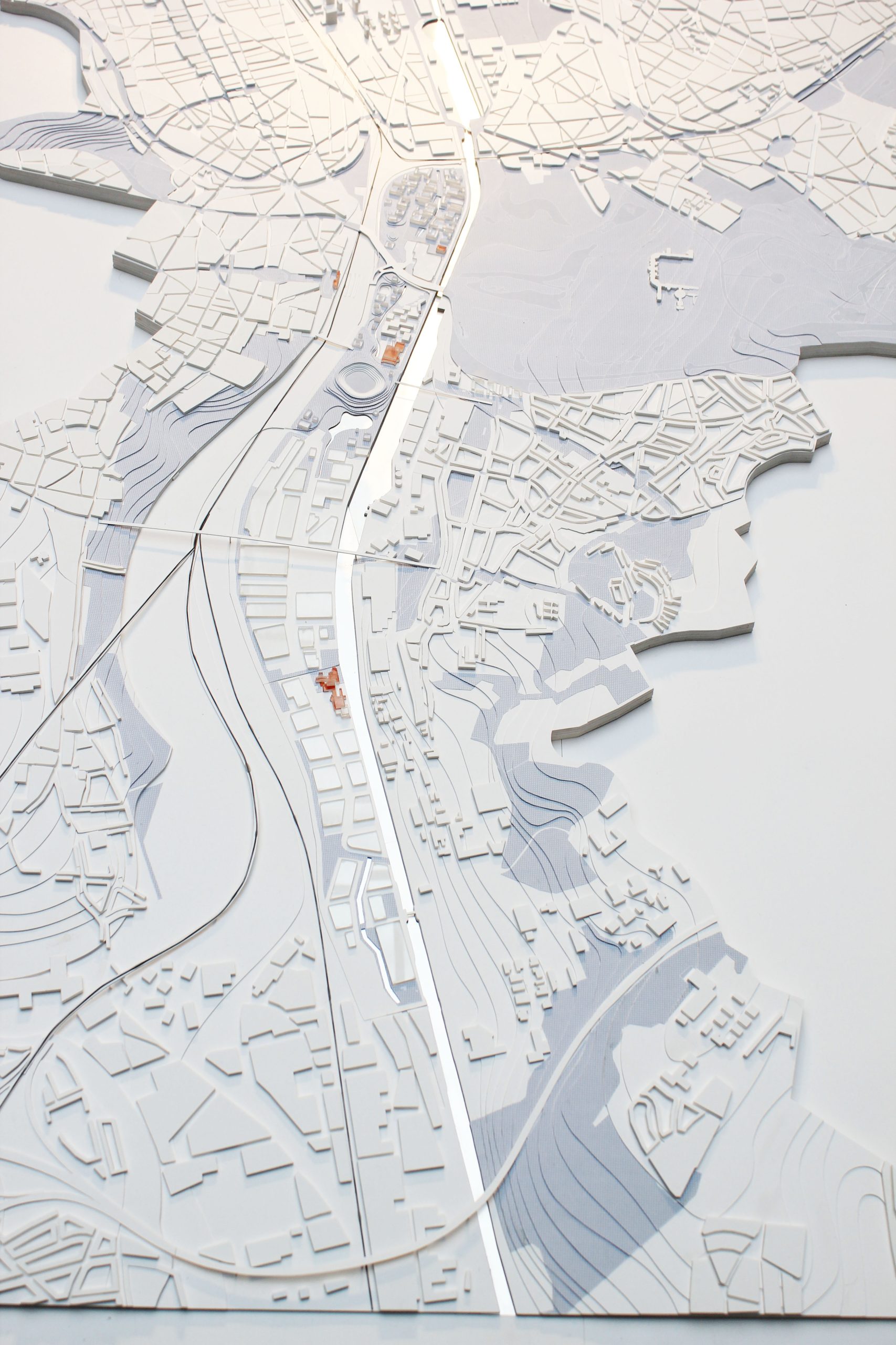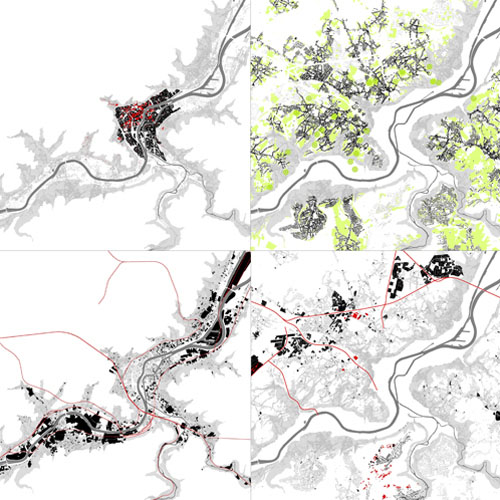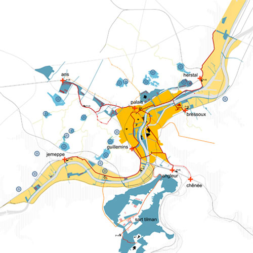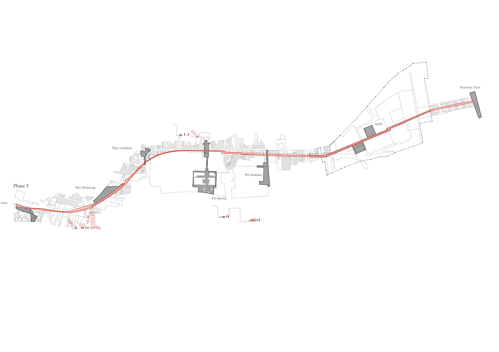 Liège is changing, from and in response to the decline and eventual disappearance of the industry in the mining area. One problem is the apparent lack of attractiveness and another one the degradation of the city centre. This has led to a polarization of the urban fabric between rich and poor where workers are still not integrated or interact with the rest of the city. The topography of the valley of the Meuse reinforces the fragmentation of the urban fabric, but also represents a strength of this territory. These elements led us to the definition of four different urban models, or simply four types of cities: 1. The dense city: old and compact, localized between the Meuse River and the hills. 2. The mining city: the mining landscape on the hillside which consists on mining housing tissues and abandoned mining activities sites and heaps. 3. The steel city: the landscape of the industrial valley that has played a leading role and is now the place where major changes might come. Industries are mainly located along the Meuse River, which implies an enormous potential for the valley. 4. The emerging city (or the 'edge city'): the contemporary city, on the plateau developed a long road and transport infrastructures and large objects agglomerations: university, business parks, shopping centres, etc. The first objective was to assess the implementation of the tram and the structured and sustainable development regarding these four types of cities in Liege. This was a great opportunity to be able to reflect on the future of a territory based on the installation of a public transport infrastructure through its various social and urban morphologies.