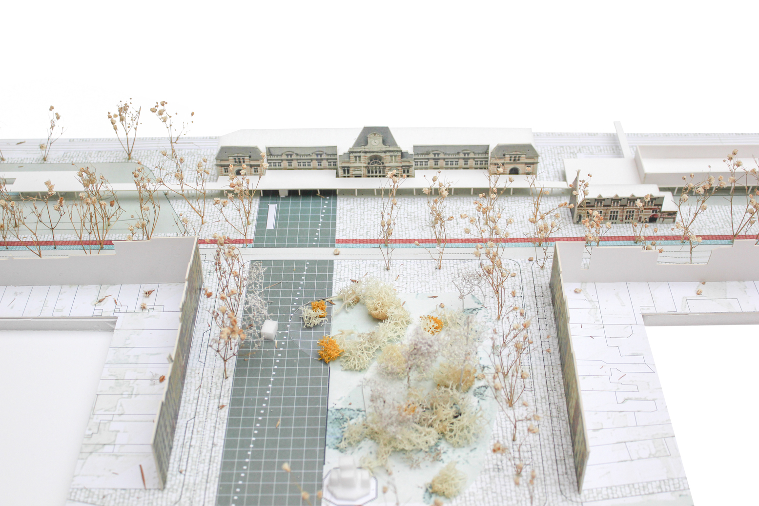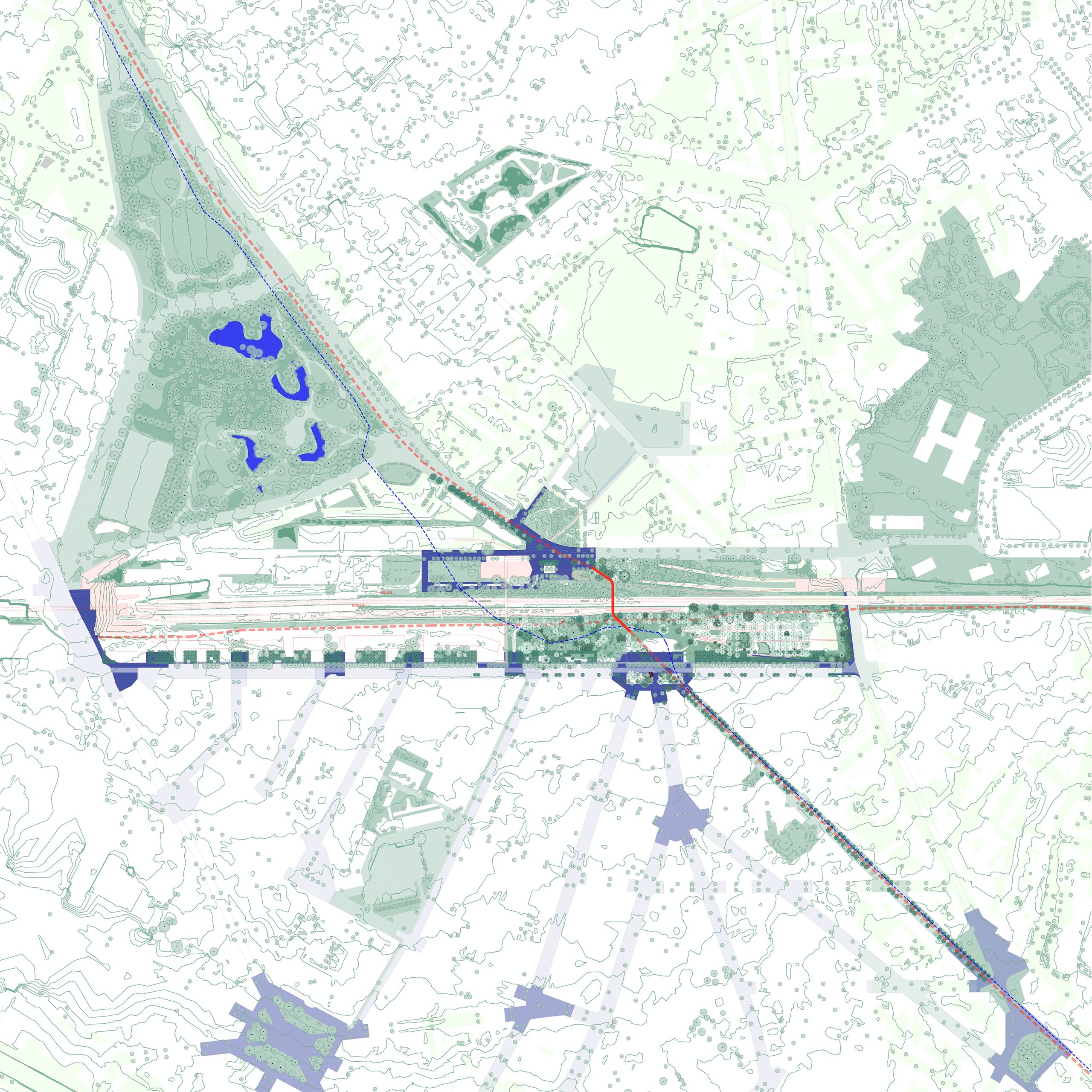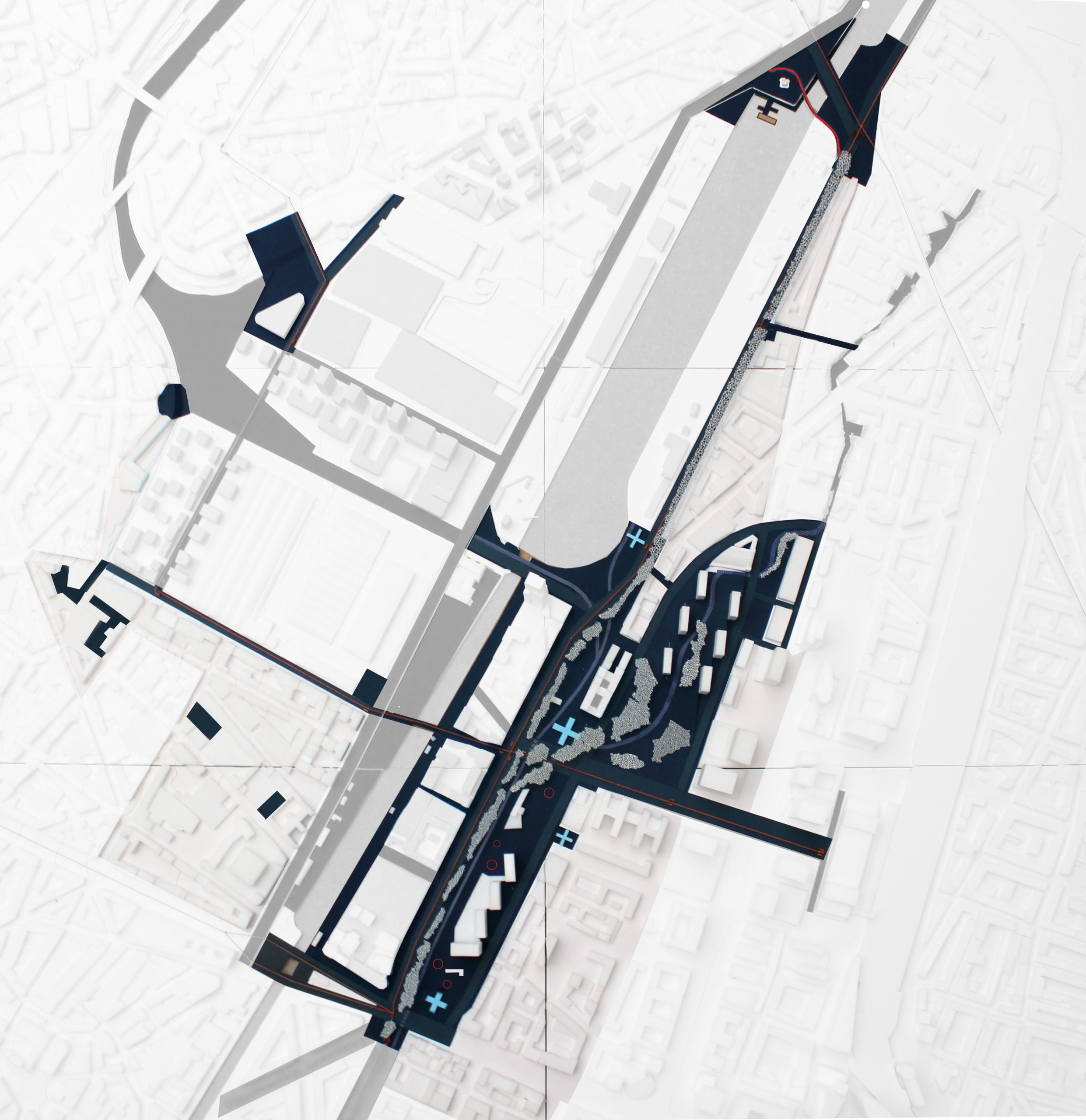 The competition deals with an old railway area at the northern side of the city of Brussels. Relatively close to the center, the Schaerbeek Formation area is surrounded by a thick infrastructural bundle. The accessibility to the area is obstructed by regional - national and international railway lines and high traffic streets. Moreover, the area is historically been used as train storage, this feature has implied a high pollution of the grounds. Above all: coal and heavy metals. The proximity to the Brussels north-haven, to the Schaerbeek train station and to the international airport (Zaventem) clarify the potential of this area. Due to the accessibility high complexity, to the problems of depollution and to the high number of economic and social players involved in the project; we opted for two different strategies instead of one solution. The strategies have been built on a base made by four different scenarios.