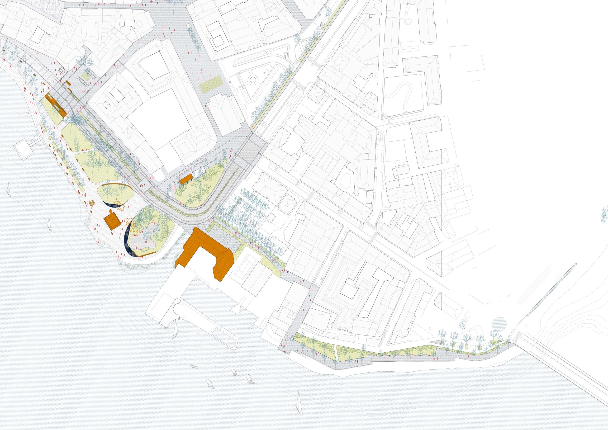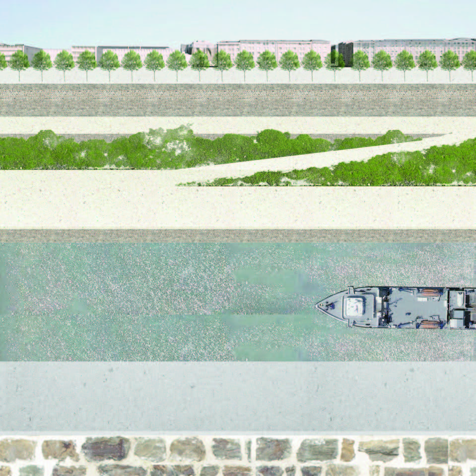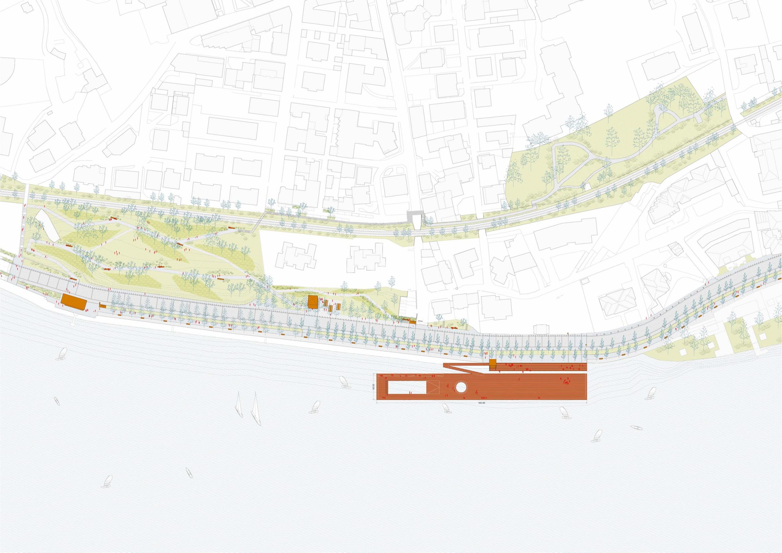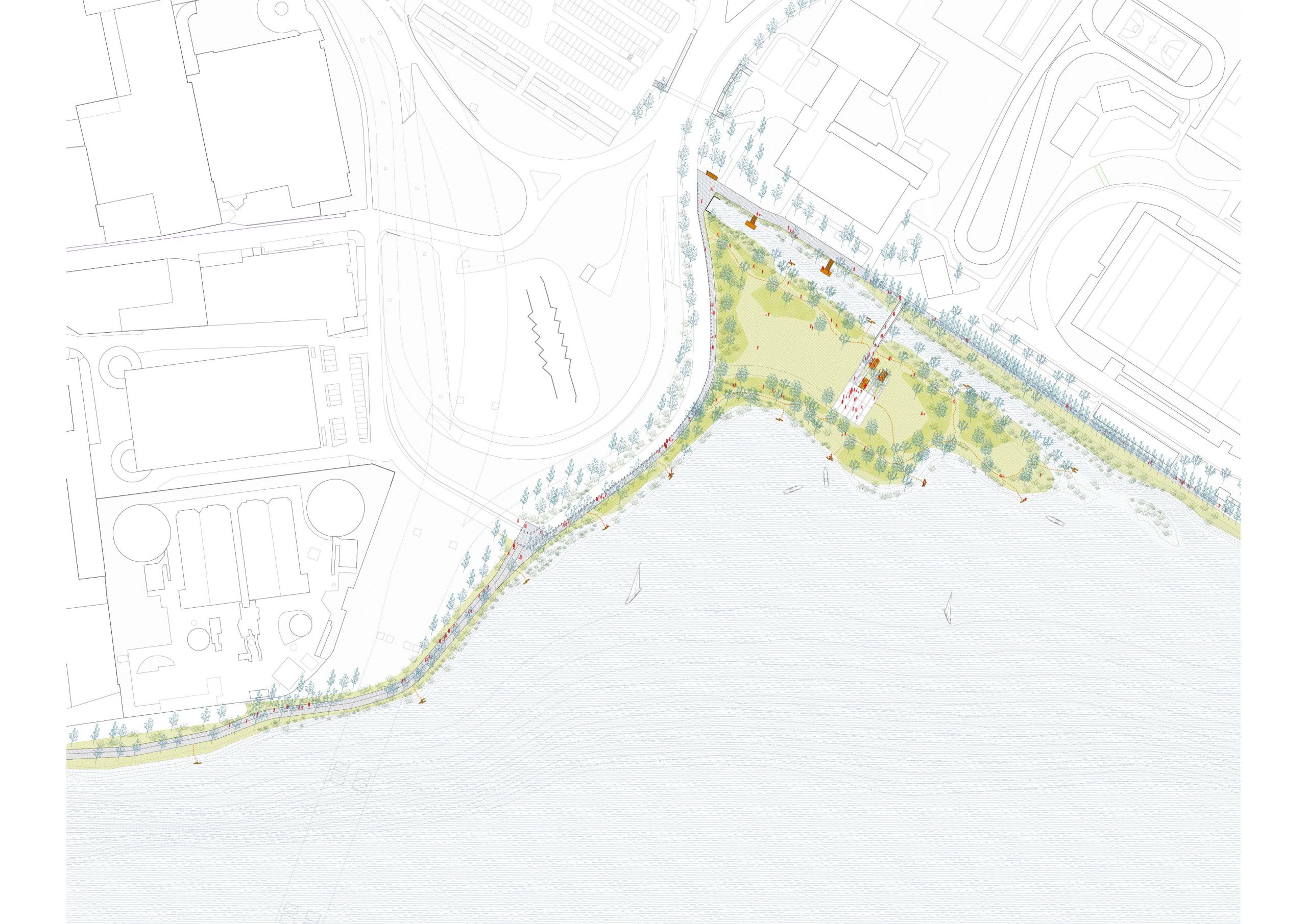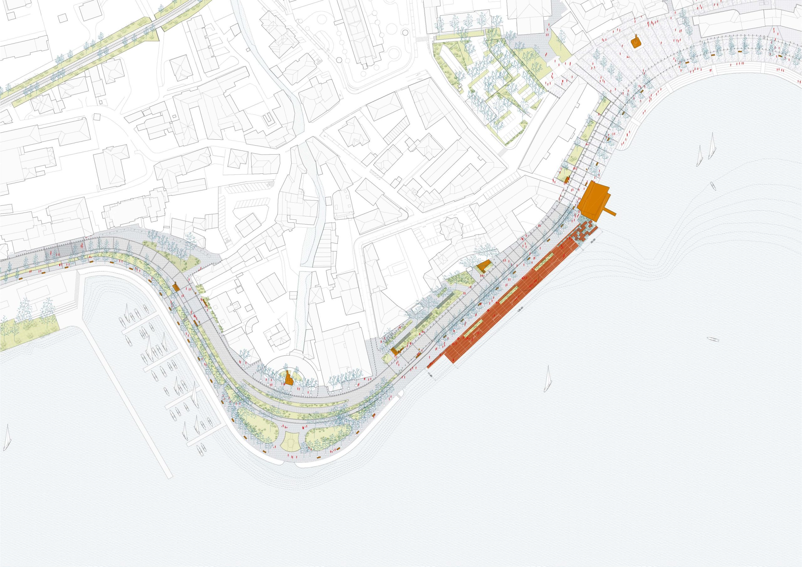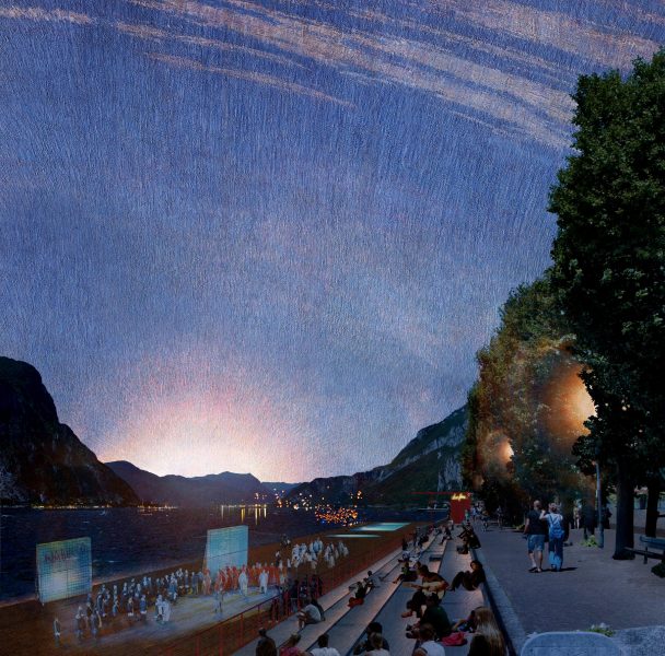 The project proposes a new waterfront accessible for everyone, using the ‘thickness’ between the lake and the urban facade and connecting the lake to the city. This is what we call ‘The thickness of the lake’. The task of the project is to rethink this thikness, to enlarge its space, increase its fruibility by citizens and tourists and collect al the differents parts of this space in a coherent urban project. The proposed interventions, arranged within flexible and incremental intervention phases, therefore aim not only to propose new equipment and attractive places on the lake, but to reconfigure the thickness between water and city. The project brings together all the opportunities, including that relating to the progressive revision of car mobility, to rebuild a direct link between the lake and the city and create a new depth on the Waterfront space, extending the attractiveness of its lake to the whole city.