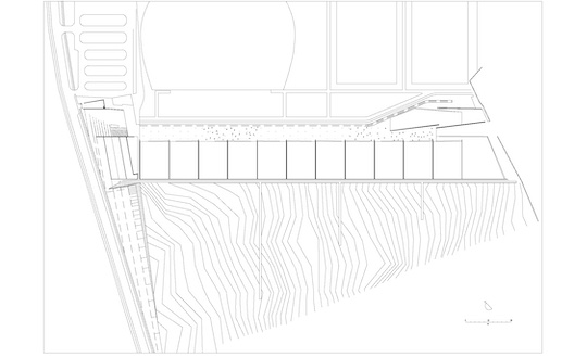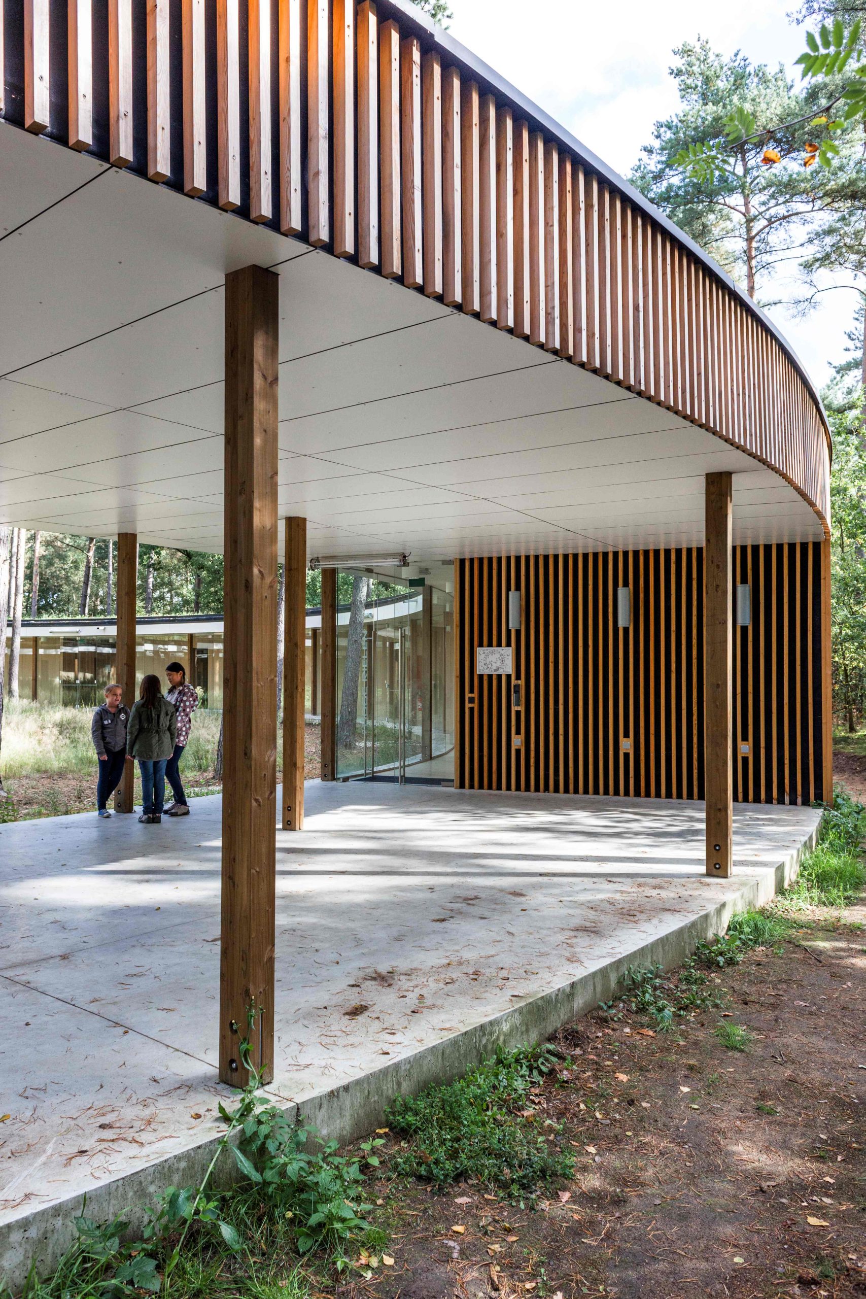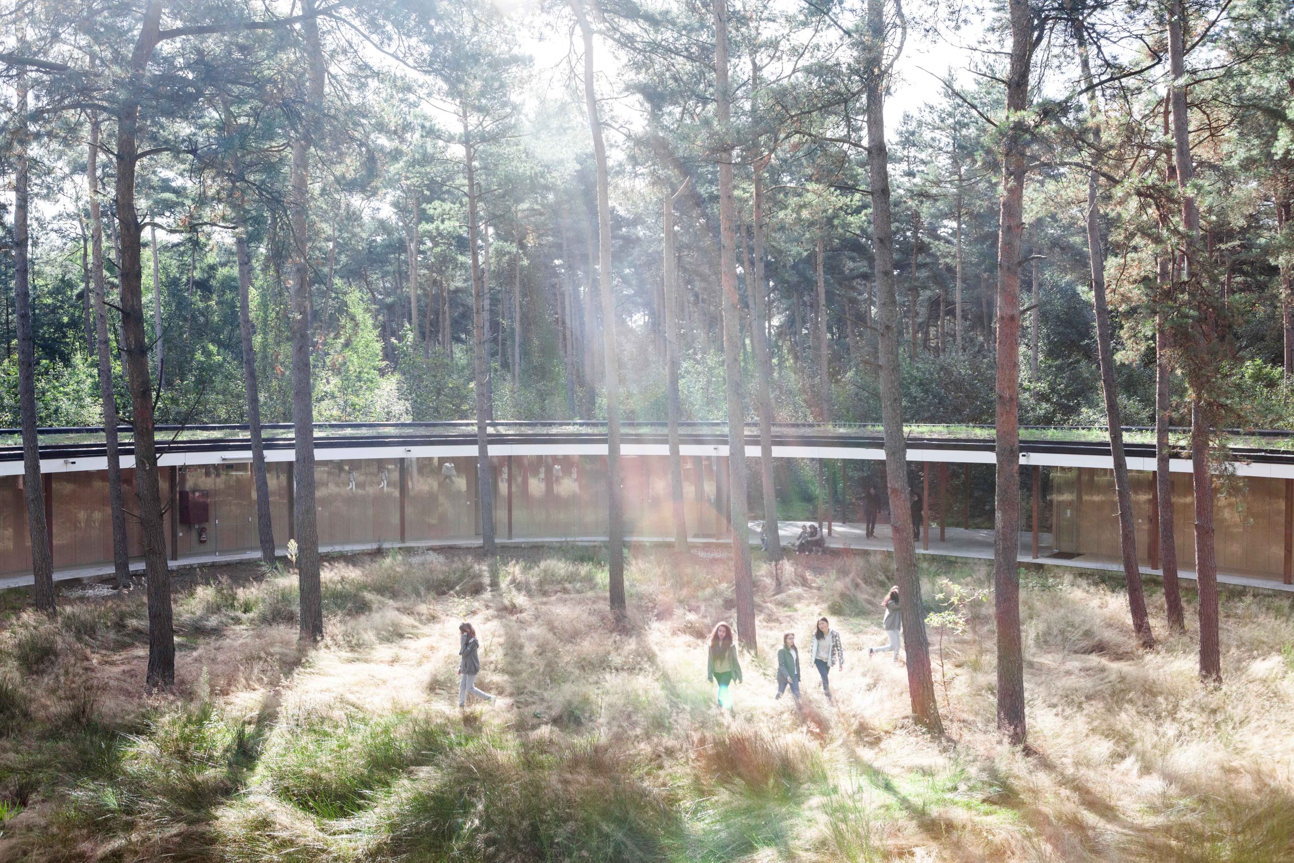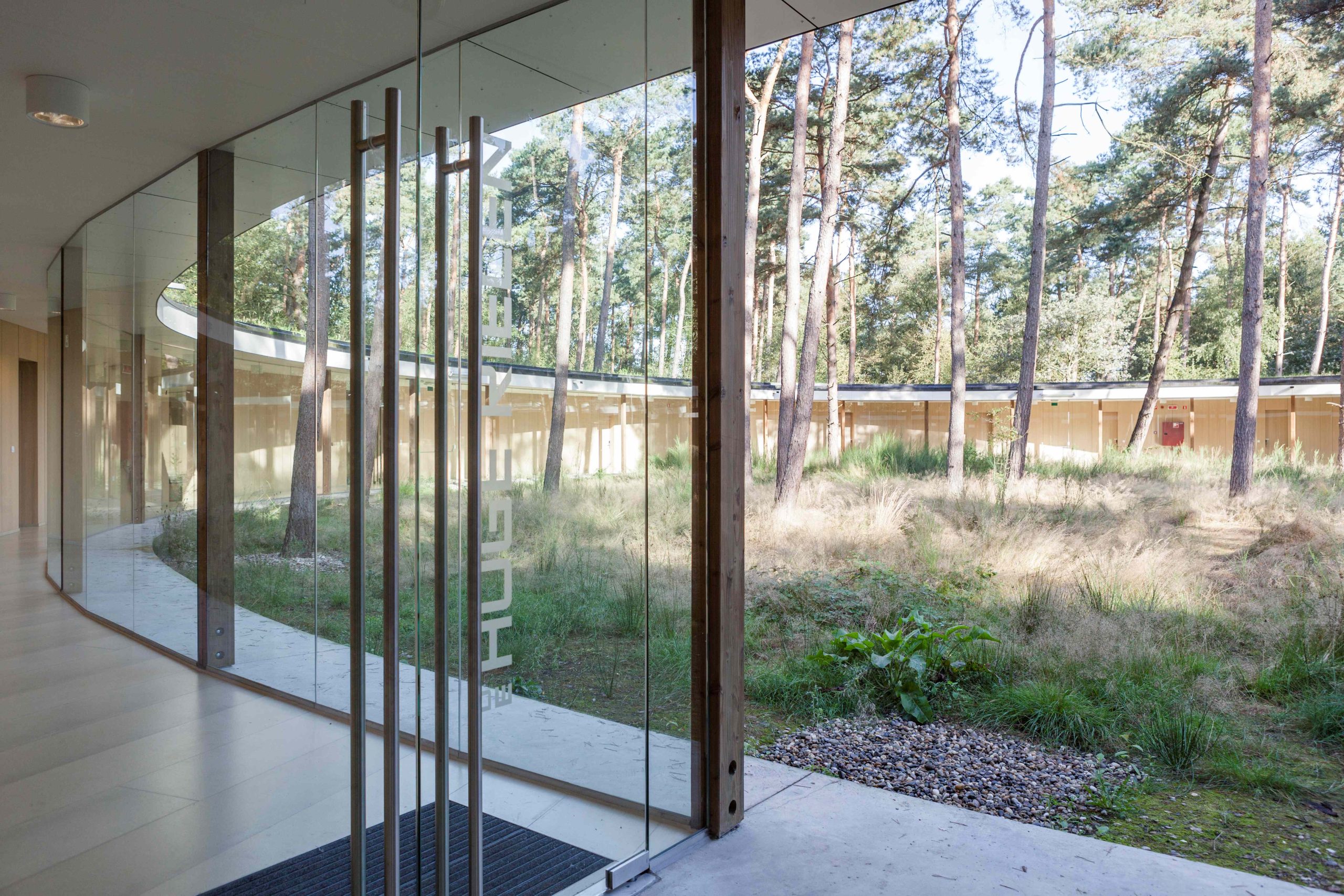 The competition to design the first part of the 'Contact Strip’ is an important step in the implementation of the Hoge Rielen Master Plan. In Hoge Rielen, the Contact Strip is considered a major public space. Along the main road, all public facilities are located. People occupy this area to meet or simply to pass through. The main intention of the master plan was to give some thickness to that line, where could be possible to organize occasional events, green spaces and water points; and to allocate amenities and main public buildings along it. But more than a physical act, the 'Contact Strip is the idea of an extended centrality that works as a guide for future changes that the emerging programs of the leisure center could bring. Today, several years after the completion of the master plan, the programs of the first part of the 'Contact Strip' have slightly changed since the establishment of the master plan. When we introduced the study projects on the site - the hotel at the north edge of the pond, the transformation of the pavilion nr 4 into a multifunctional space in the south and finally, the open space between the reception and the cafeteria, the 'Contact Strip' was considered enriched by these new spaces and facilities that are transversal to the main direction of the existing public sequence. This new spatial condition and the role of the 'Contact Strip' are reinforced by its connection to the cross-links, which are also linked to another crossing, forming a thick, clear mesh. One of these new time project events is Hostel Wadi. By its circular shape it creates a central interior space, a naturalness circumscribed and contained and where the atmosphere is different from the rest of the park. This device allows to establish a special relationship between the users and the hostel itself. Actually, even if the rooms are open to the outside (towards the park), they are serviced by an internal corridor on the outskirts of this central space, that it is separated only by large continuous berries leaving the enjoyment of the views to this last. The interior is a green microcosm that also function as a Wadi collecting rainwater from the building.
