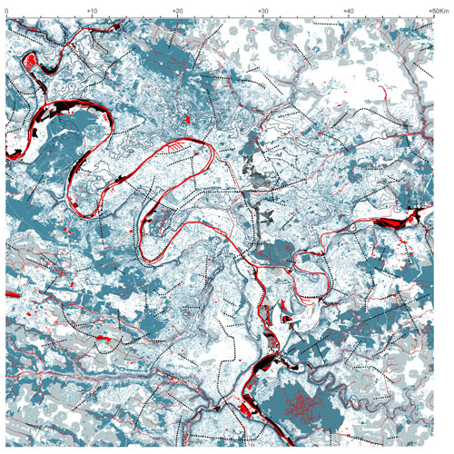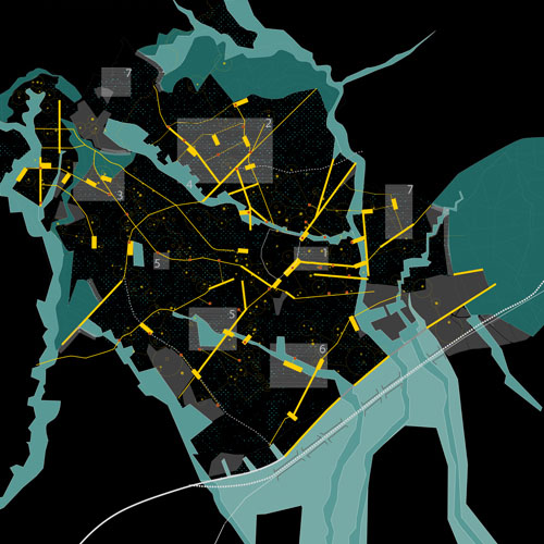 In collaboration with: EMU (students of fall semester 2008-2009 of the European Master in Urbanism), IUAV, Doctoral students in Urbanism (Lorenzo Fabian, Emmanuel Giannotti, Paola Pellegrini), PTV France, MOX, MIT and P-REX (Alan Berger and Case Brown), TU München (Department of Building Climatology and Building Services) and Ingenieurbüro Hausladen GMBH