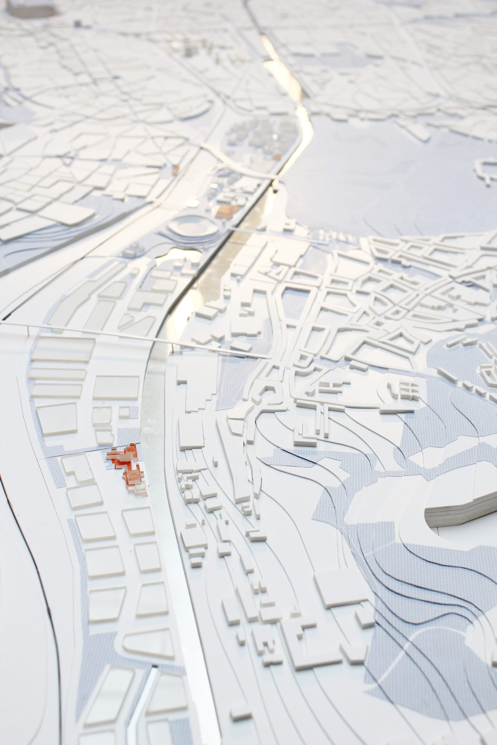 A public space, it is not just a surface a series of street furniture, facilities, ... It is first and foremost a place, space and volume. Beethoven Street in Lamot area is an external volume that organizes different functions and uses of public space. But even more important is that it is a vital space in the city of Mechelen. Located along the Dyle between the shopping streets, the Lamot site with its new modern art museum, a major new cultural centre will be. The space museum, which overlooks the river and the cathedral is an important public space in the centre of the main network places Mechelen. In the future, the old brewery Lamot, located along the Dyle between two trade routes, a contemporary art museum and waterfront homes act as an important cultural node. The museum, which will overlook the Dyle, is in the middle of the system capacity and is therefore clearly an important public place in Mechelen. Today, after the demolition of the wing of the brewery from the 30s, the site needs a new coherence, defining both openings and interior public spaces. The site entrance on the side of Guldenstraat will be marked by a new public building to replace the old angle Guldenstraat and Beethovenstraat building. This building manages its location and height, the visibility of the site and completes the front of the Guldenstraat as prescribed by the Directorate of Monuments and Sites. On the ground floor we find a terrace. On the first-floor spaces are available for small exhibitions or conferences while floors are reserved for offices. Fluid public space rises from underground parking, along the narrow streets of the old brewery to the next level.