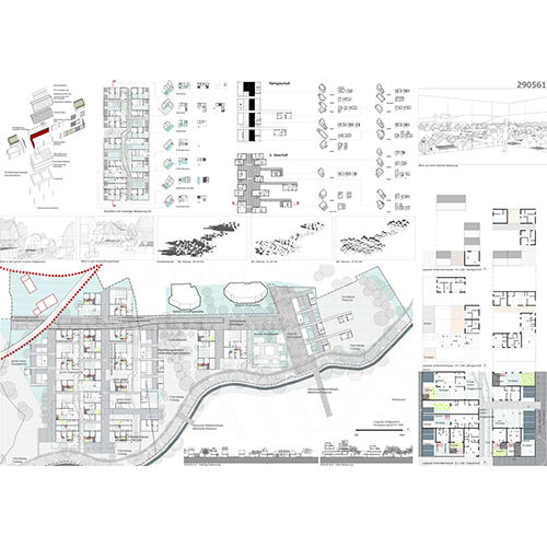 The project area in Antwerp Regatta is unique in that it offers the relationship between the urban and public space. The strength lies in the fine mesh of the public space at the local level which gives access to the park by a consistent materialization park that stretches along the Galgenweel along the Scheldt. This network provides ecological continuities between the park and the river and the forest below. These are the natural logic which help draw the plan public spaces. In the neighbourhood courses are organized and prioritized. Some axes promoting access by car and parking, while others remain completely pedestrian and linking public open space, rear gardens and homes. Treatment materials soil and vegetation makes this device readable. The plotted paths are designed to give priority to alternative modes and slow the car. Of '' wadis '' provide natural continuities and from the park and play a buffer role for the recovery of rainwater. Various building plots are subject to various projects by architects, ensuring diversity in the types and morphology of the proposed buildings. To ensure the transition between the park and the village, the east-west links are strengthened. The entrances to the park are a series of places that announces '' something else ''This announcement is made by the presence of materials of the park extend linearly along the footpaths. These places are also equipped with useful features such as bicycle parking, fountains, etc... A change of vegetation also has the character of the nearby park. The use and combination of materials is the result of sustained attention to the continuity of the village and the park. This gives a real character to the street and public spaces without becoming eclectic.